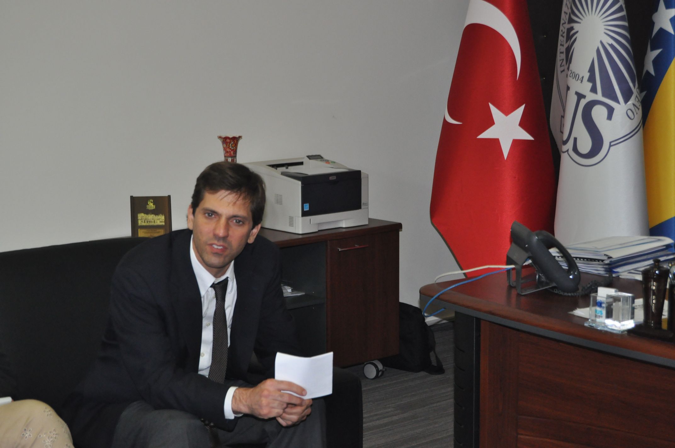 Rector Oğurlu presented the work and development of the University to his guests and he spoke about what has been done so far during the past years in the fields of higher education, building university campus, exchange of academic staff and students. Attaché Catalfamo talked about the possibilities of cooperation between the Embassy of the United States and IUS in form of academic staff exchange. US academic staff and researchers would get opportunity to spend one year in BiH where they could teach at IUS under the Fulbright exchange program.