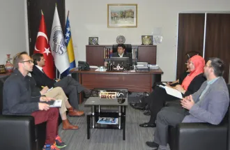 On Wednesday, 27 May 2015, Delegation of USA Embassy visited the International University of Sarajevo (IUS). Delegation was consisted of Attaché for Culture and Education of the US Embassy in BiH, Eric Catalfamo and Senior Advisor for Education and Culture Elizabeta Delalić and Elmina Kulašić. The distinguished guests were welcomed by the Rector of IUS, Prof. Dr. Yücel Oğurlu, Dean of the Faculty of Arts and Social Sciences (FASS), Assoc. Prof. Dr. Muhidin Mulalić, Assist. Prof. Dr. Nudžejma Obralić and Senior Assistant, Nerkez Opačin.