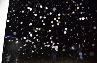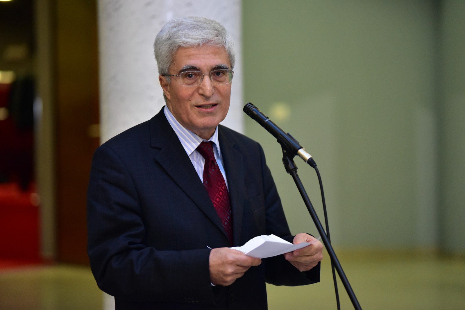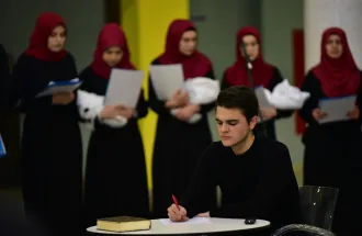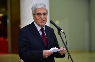 The visit started with the student performance by Performance Club entitled “The Nation” (“Millet”), which was dedicated to all the victims and martyrs of war and violence, but highlighting the happenings of the 15th of July in Ankara and Istanbul, Turkey. At the end of the theater show, the actor Mirza Rastoder invited IUS Rector's Türe, the Deputy Minister Boynukalın and all the guests to release the Turkish flag. Then, the delegation entered to the main amphitheater of the IUS to participate in the conference.