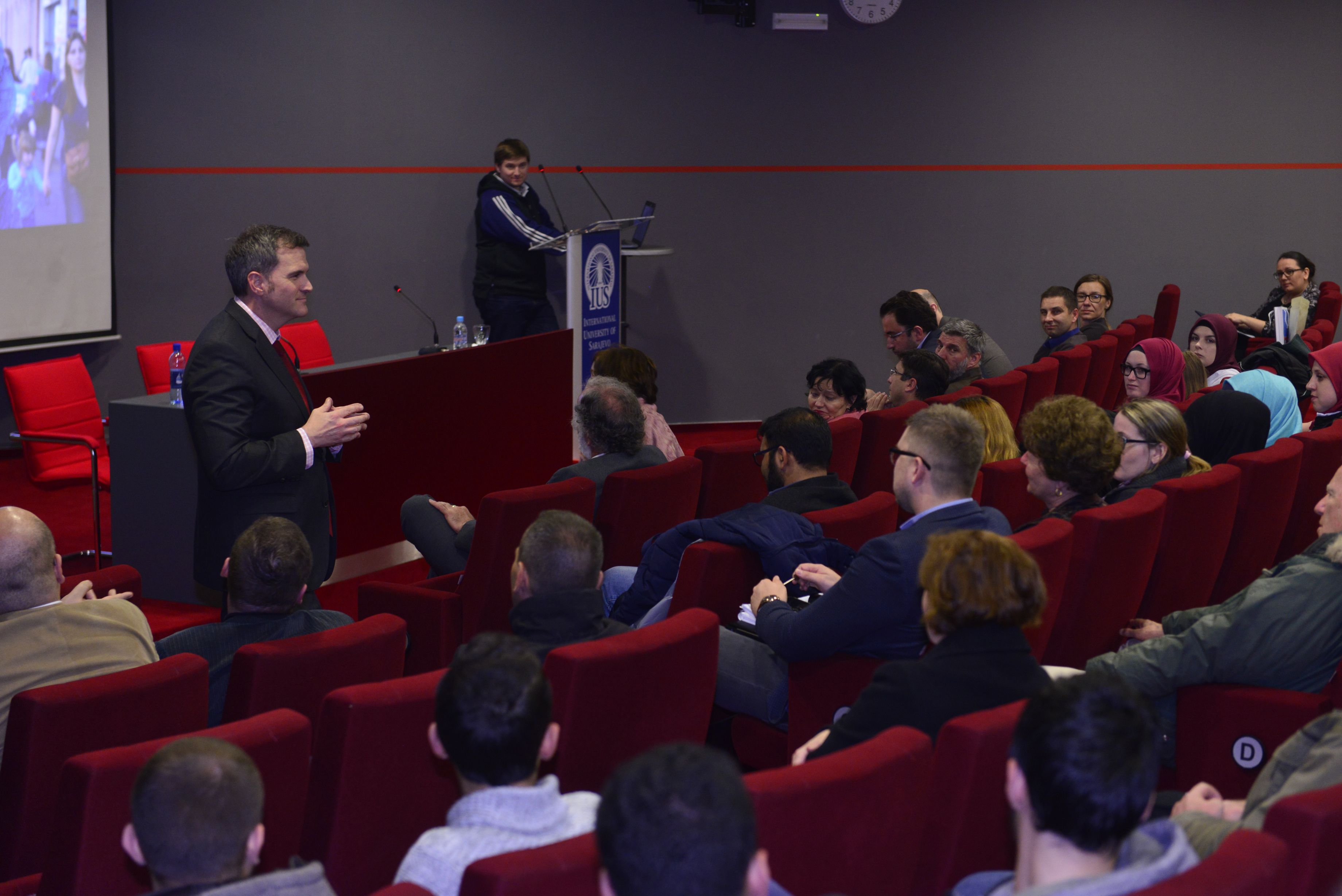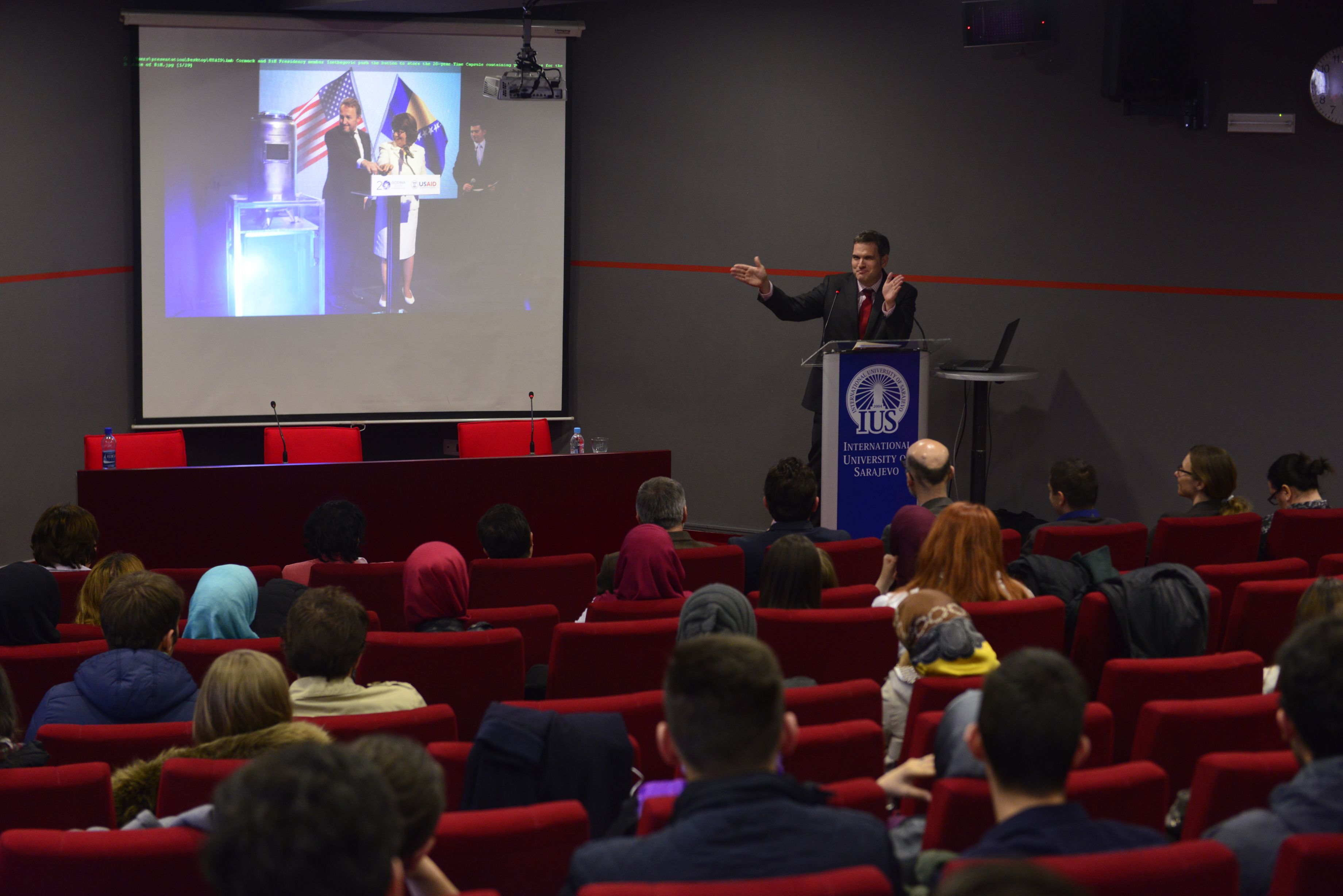 On Monday, 25th of April, 2016, Mr. Peter Duffy, director of USAID in Bosnia and Herzegovina, visited International University of Sarajevo. Mr. Duffy gave a lecture on the topic „Development of economic cooperation between Bosnia and Herzegovina and USA: the role of USAID in Bosnia and Herzegovina and future plans“.