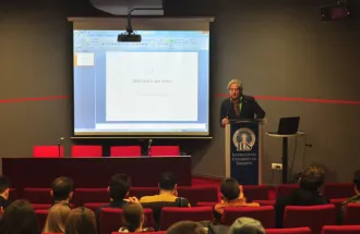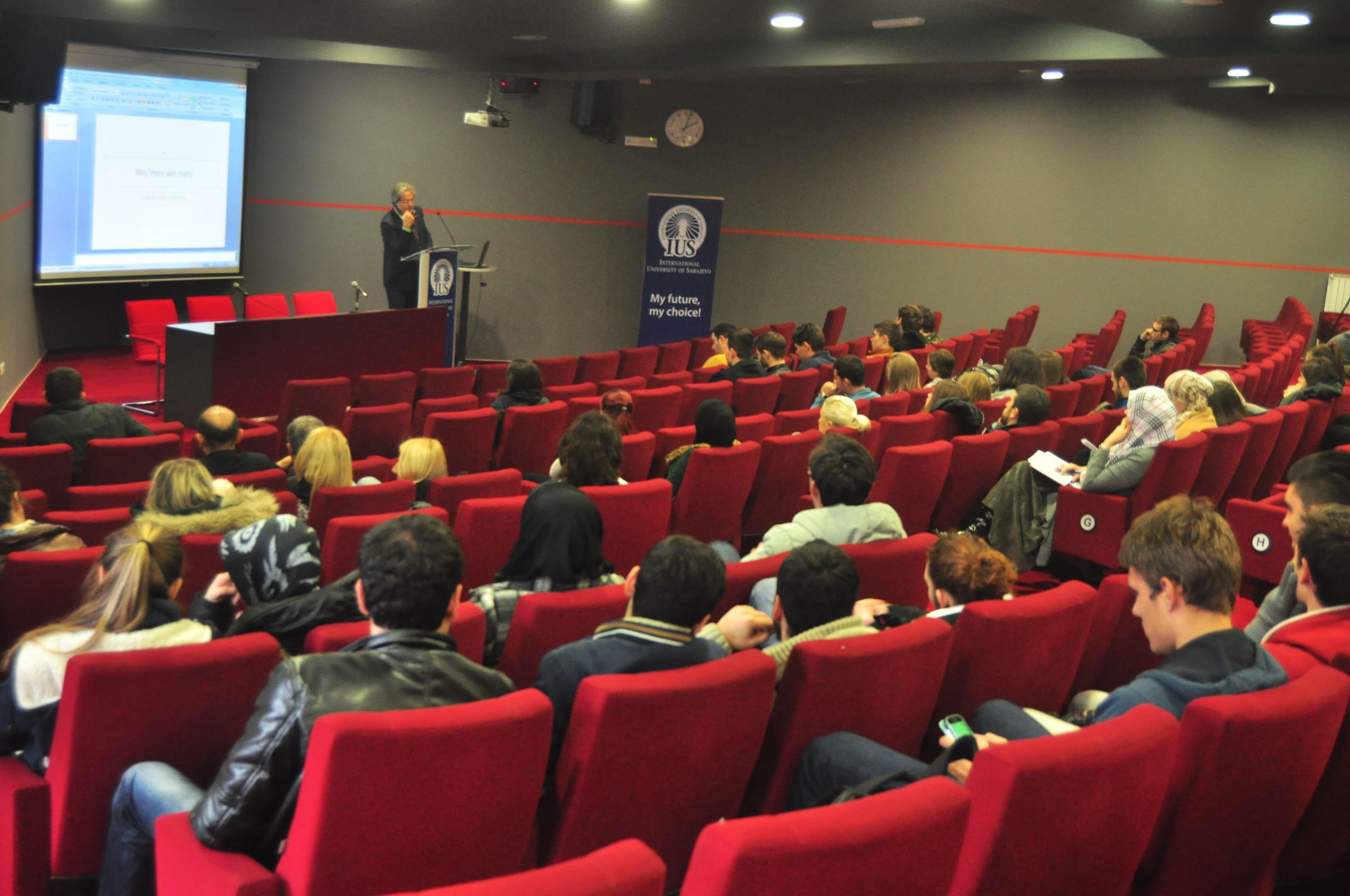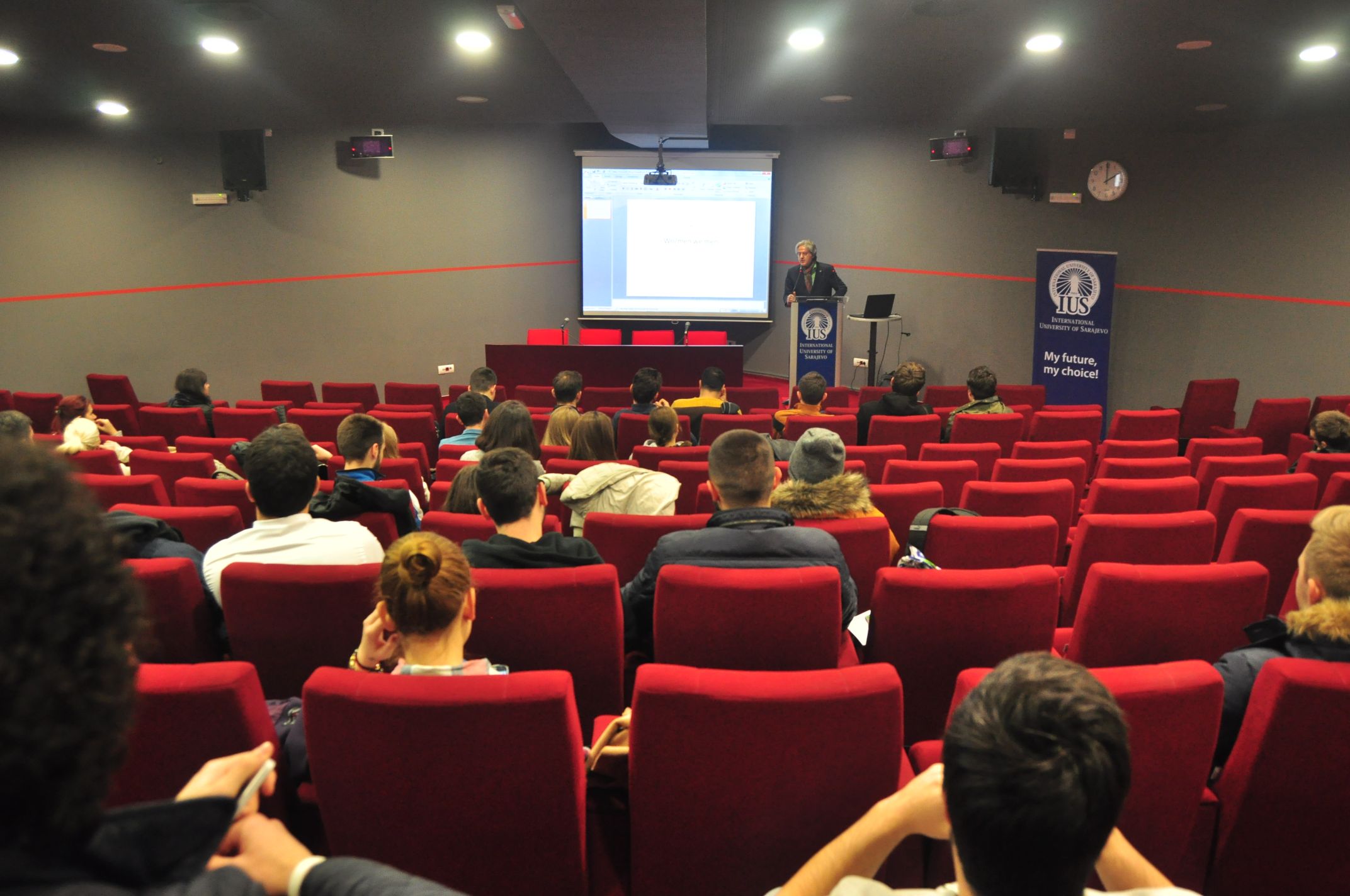 Among the audience at this lecture were IUS Rector Prof. Dr. Yucel Ogurlu, Assoc. Prof. Dr. Hasan Korkut and Prof. Dr. Metin Toprak and academic staff and students from the faculties and programs of International University of Sarajevo.