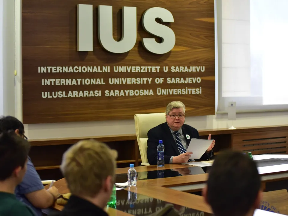 In the third of a continuing series of lectures, David Pettigrew, Ph.D. Professor of Philosophy Southern Connecticut State University, gave a lecture titled "The ICTY Verdict in the Case of Vojislav Šešelj: The Legitimization of Hate Speech and the Silencing of the Law and the Truth" at the International University of Sarajevo on November 24, 2016.