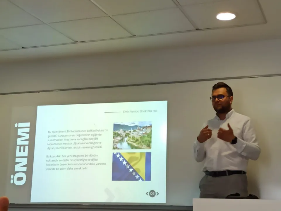 Under the mentorship of Prof. Dr. Füsun Alver from the Communication Science and the Internet Institute at Istanbul Commerce University, Dr. Hambo's thesis, titled "Research on Testing the European Union Digital Literacy and Competency Framework in Bosnia and Herzegovina," explores pivotal aspects of digital literacy and competency within the Bosnian and Herzegovinian context.