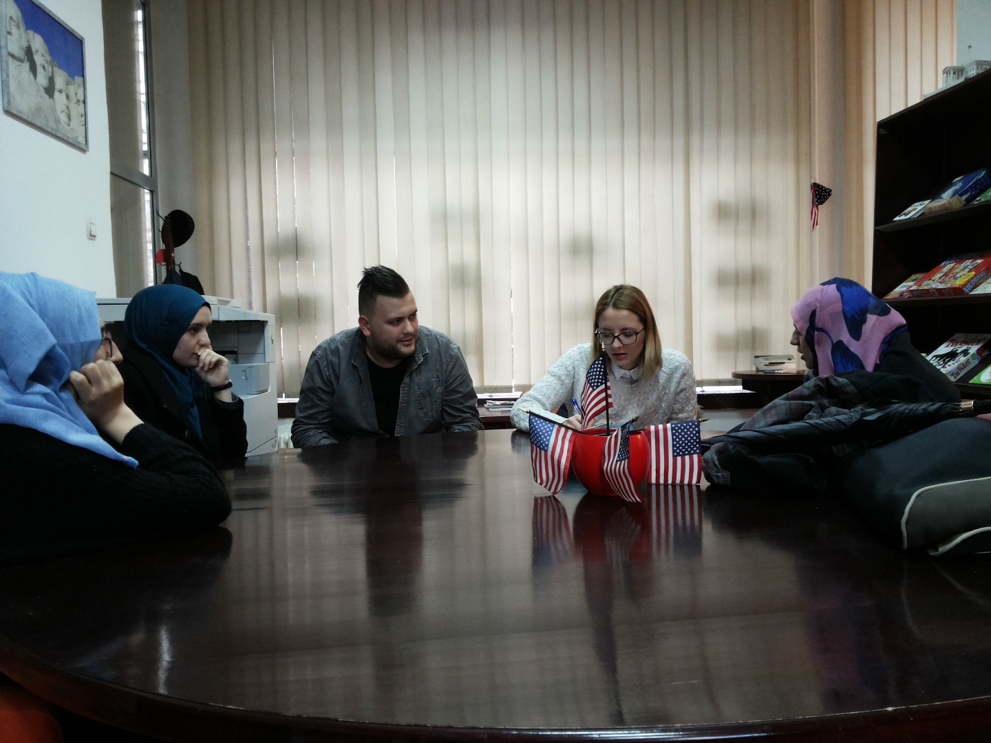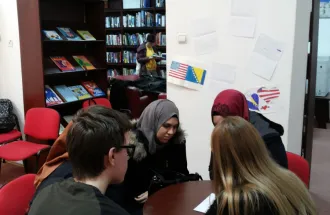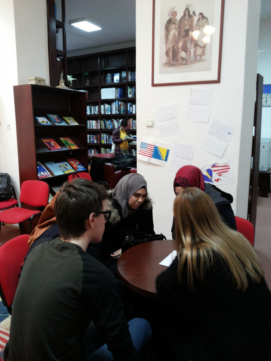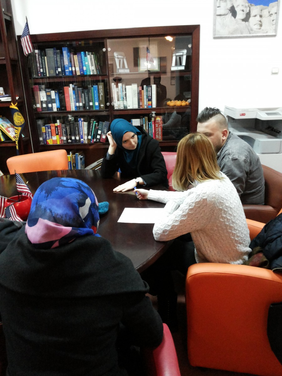 On Wednesday, 28 December 2016, students and staff of IUS English Language and Literature Department visited American Corner in Sarajevo. Ms. Amra Pandžo, representative of American Corner in Sarajevo, welcomed ELIT students and staff members and provided basic information about the activities, aims and opportunities offered by American Corners, which are sponsored by U.S. Embassy in Sarajevo and the local libraries. Their goal is to broaden the range of information about the United States history, culture, people, legislative system and other relevant areas, as well as to increase mutual understanding between Bosnia and Herzegovina and the Unites States of America.