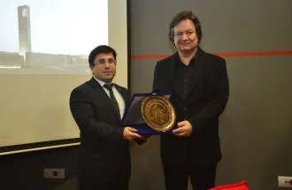 The famous Turkish architect Emre Arolat gave a lecture ''Against, but in the Stream'' at the International University of Sarajevo (IUS) on Friday, December 12, 2014. Honorable invited guest at the lecture was Ambassador of the Republic of Turkey in Bosnia and Herzegovina, HE Cihad Erginay. In his welcoming remarks IUS Rector, Prof. Dr. Yücel Oğurlu welcomed the distinguished guests, especially the esteemed guest lecturer, and stressed that his visit to IUS is a great opportunity for students to learn and listen from experience of this renowned expert.