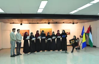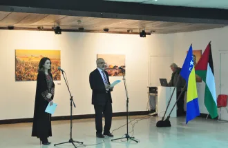 At the Opening Ceremony, members of EMSA club under the guidance of Amina Krdžalić performed nasheeds that touched the hearts and provoked the emotions in the audience. Under the guidance of Assoc. Prof. Dr. Meliha Teparić artistic expression and acting skills were shown in the performance by VACD student Sara Tayyip and members of IUS Performance club president Mirza Rastoder and club members Emina Bašić and Emina Grabovica. Their performance showed situation of the Palestinian people in chains with endless desire for freedom.