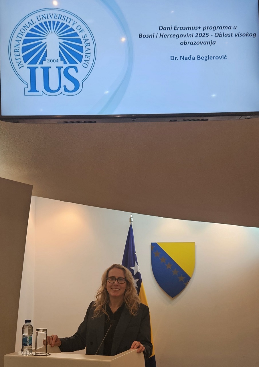 Among the invited speakers was Dr. Nađa Beglerović, Manager of the Office of Sponsored Projects at the International University of Sarajevo (IUS). She discussed IUS’s activities within the Erasmus+ program, and her presentation was well received, showcasing the university's active participation and successful implementation of Erasmus+ initiatives. Dr. Beglerović highlighted best practices at IUS, detailing different projects, international partnerships, and mobility initiatives that have strengthened IUS’s role in fostering international cooperation in higher education. The event reaffirmed IUS's commitment to the Erasmus+ program, promoting excellence, innovation, and collaboration among universities in the region and beyond.