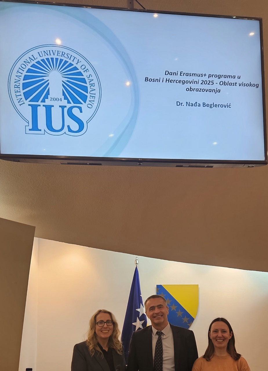 IUS is grateful for being recognized for its work and for being invited to this important event. We thank the Ministry of Civil Affairs and the National Erasmus Office in BiH for the invitation and their continuous support.