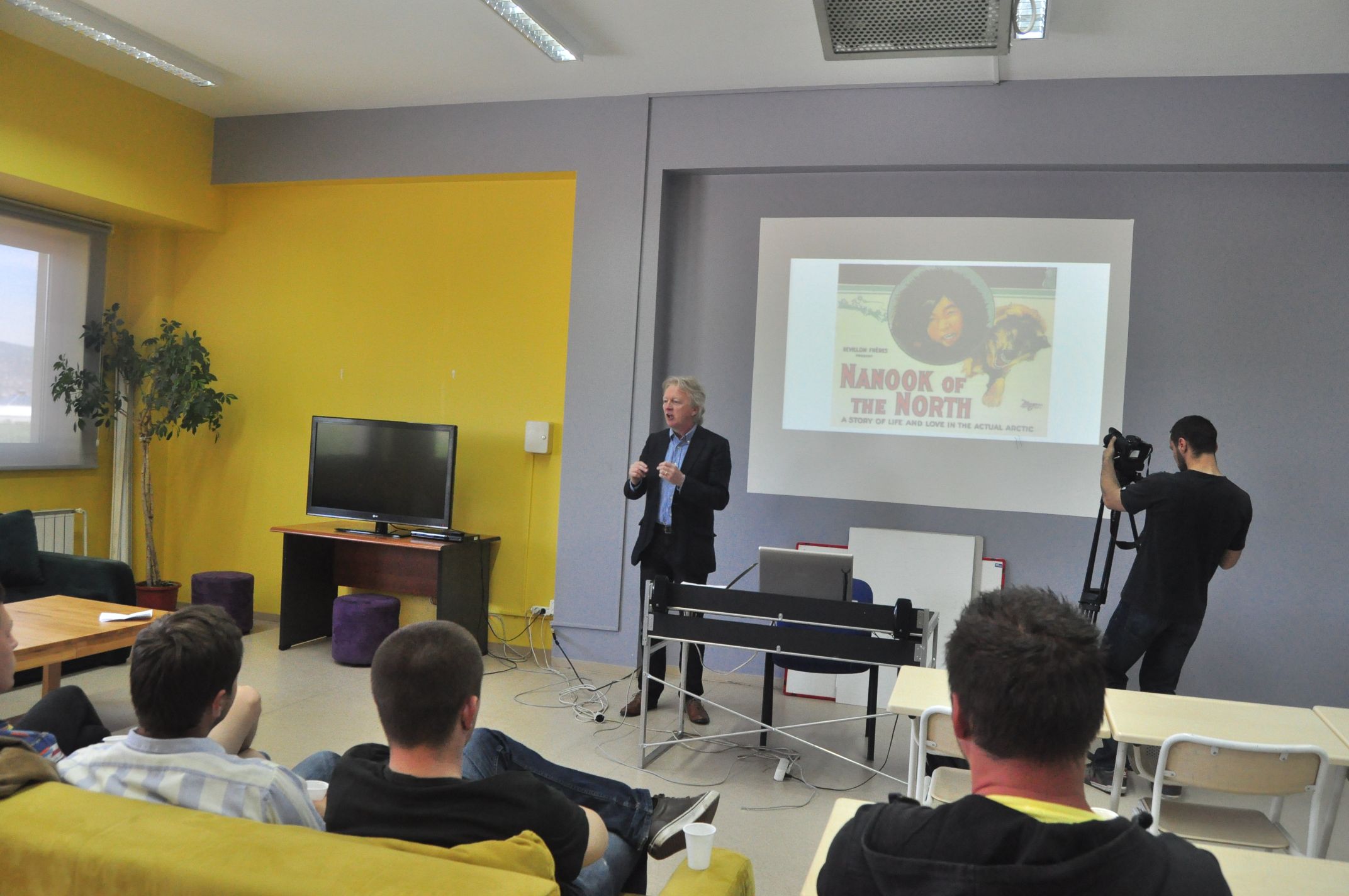 International University of Sarajevo (IUS) was a host to famous producer and director of documentary films, Dr. Iwan Russell-Jones on Wednesday, May 13, 2015. As part of his visit to IUS, Dr. Jones gave a lecture on: '' Seeking Truth: Documentary Filmmaking and social impact “. Dr. Iwan Russell-Jones has over 25 years of experience as producer and director of documentaries for the BBC, in both television and radio. He also works as professor at the University of Vancouver. Assoc. Prof. Dr. Lejla Panjeta from VACD Program of the Faculty of Arts and Social Sciences (FASS) organized this lecture in cooperation with the Foundation '' Izvor '.