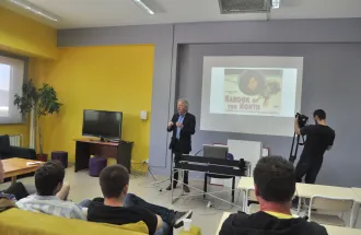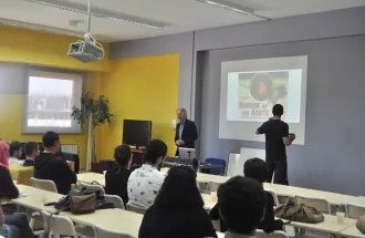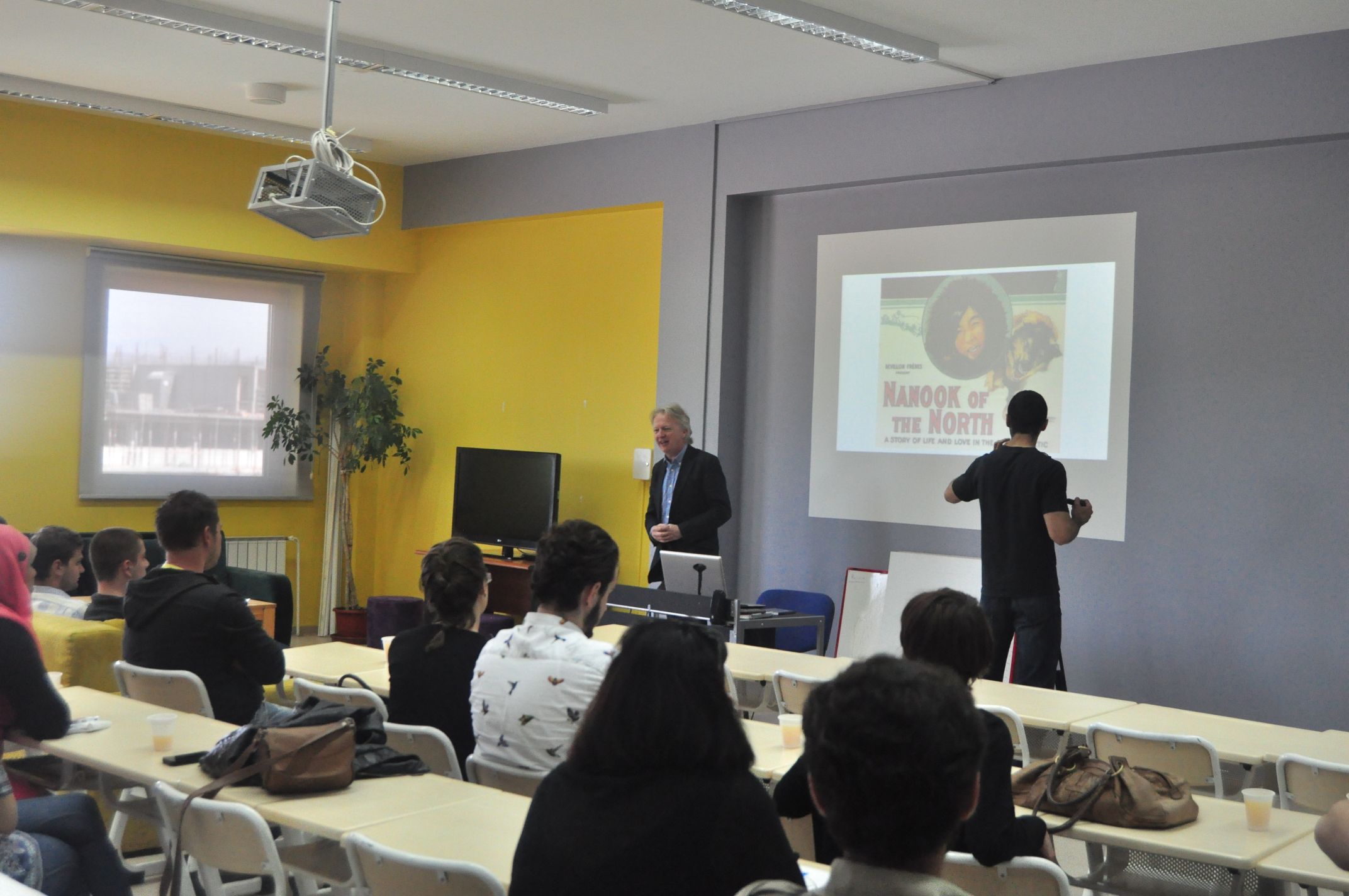 During the lecture, Dr. Jones talked about many years of experience he had while working for the famous British BBC and recording of religious and documentary programs for the public TV stations. “During my work period I became well acquainted with many religions of the world and I produced many documentaries about them, because I wanted to share the knowledge I gained with the viewers. The BBC has assisted me selflessly for many years in that process”. - said Dr. Russell-Jones. The introductory words prior to eminent guests lecture were given by Dr. Lejla Panjeta and Mrs. Petula Myers from ''Izvor'' foundation. At the end of the lecture, a debate followed where students had a chance to ask questions through a half an hour discussion and express opinions on the subject of the search for truth in a documentary film and the possibilities of authorial creativity in the BBC production.