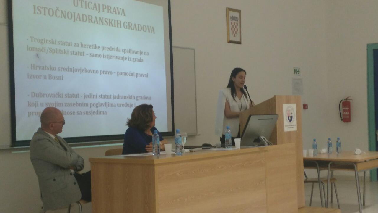 Associate Prof. Dr. Dževad Drino and senior teaching assistant. Benjamina Londrc presented a paper entitled " Historical aspects of the influence on medieval Bosnian law by East-Adriatic cities", which is the de jure first Europeanization of the Bosnian medieval law.