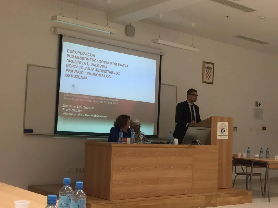 The Conference brought together prominent experts from different fields of legal science. The aim of the conference was to analyze the various segments of the Europeanization of private law, as well as key problems in the process of harmonization and unification of the legal system. Academic staff of the International University of Sarajevo participated the conference and contributed to its work. Assist. Prof. Dr. Emir Sudžuka exposed the presentation entitled "Europeanization of the B&H company law in the absence of a unified legal and economic environment.". The participants were particularly interested and discussed with the author about the current situation in the Federation of Bosnia and Herzegovina, Republic of Srpska and the Brcko District, and also gave some proposals to harmonize the law with the applicable European legislation.