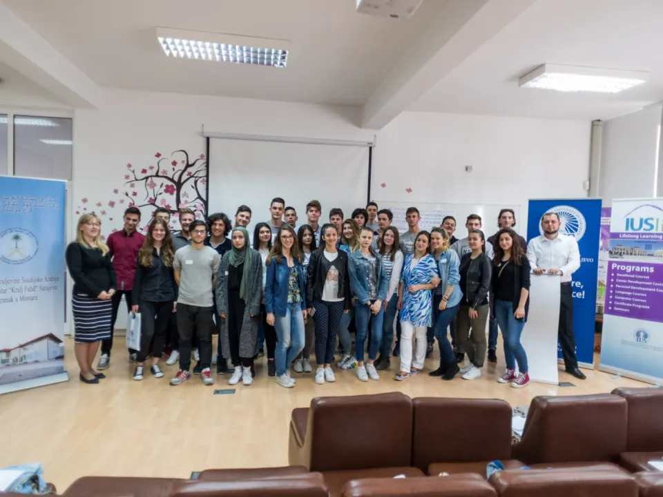 On Saturday, April 1, 2017, IUSLife conducted a three-hour workshop for thirty students from six high schools in Mostar. It was hosted by the “King Fahd” Cultural Center in Mostar and held by Elmedin Zubović, MA – one of the English language instructors at IUS. This workshop is the follow-up workshop to the one carried out on January 28 which dealt with preparation for the listening and reading sections of standardized English language tests, such as TOEFL and IELTS. However, this time the workshop dealt with the improvement of students’ speaking and writing skills across different styles and registers. Throughout the workshop, students had a chance to take part in hands-on speaking and writing activities, such as conducting formal and informal interviews, analyzing and writing reports, discussing and writing poems, and many more.