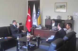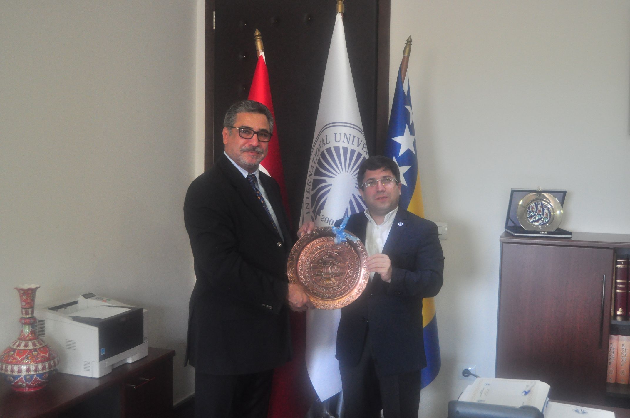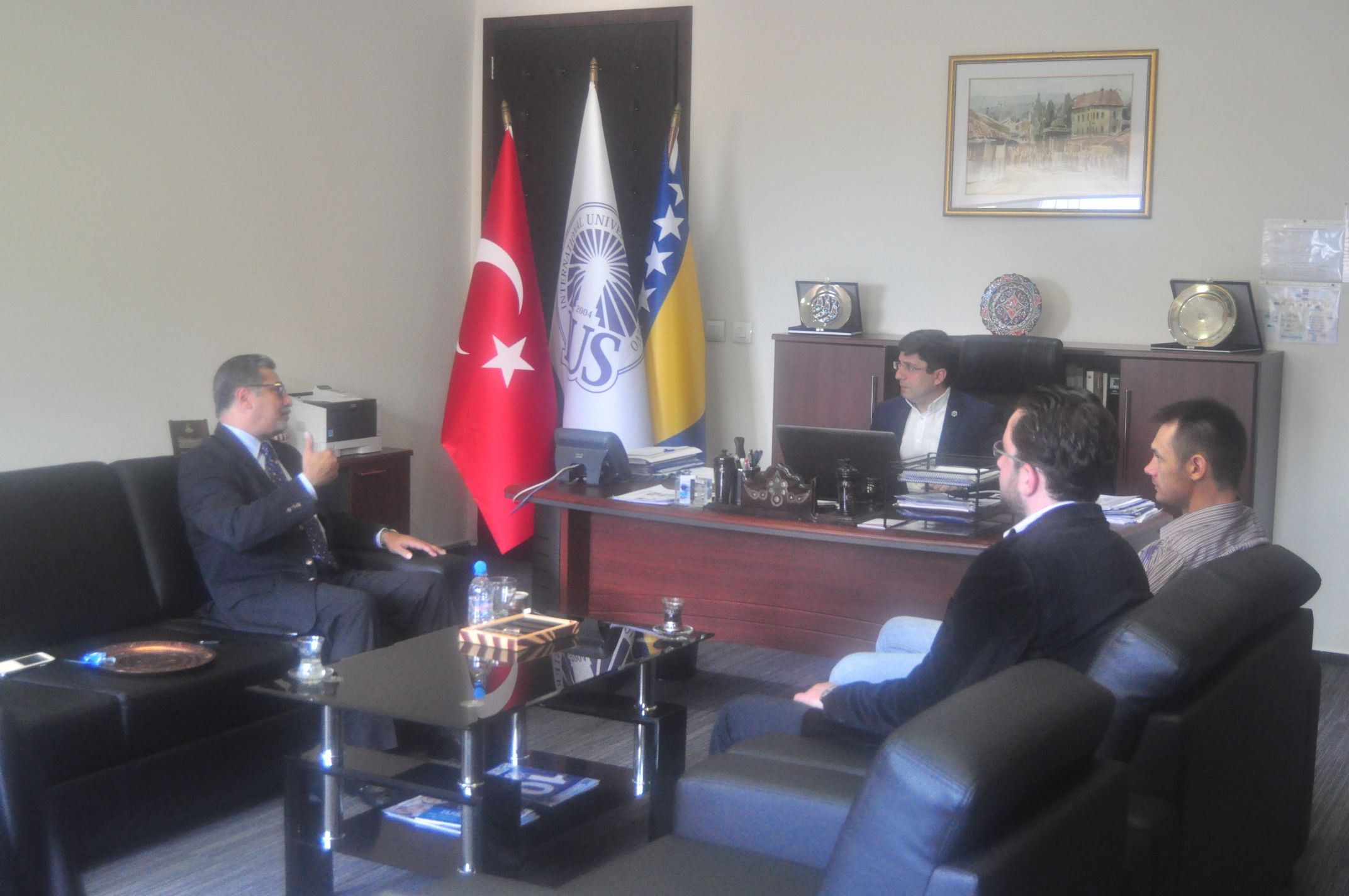 Former Minister of Education of Pakistan, Mr. Mian Imran Masood visited the International University of Sarajevo (IUS) on Monday, May 18, 2015. Mr. Masood met with IUS Rector, Prof. Dr. Yücel Oğurlu and discussed the possibilities of cooperation with educational institutions as well as the idea of bringing Pakistani students to study at IUS. This visit was initiated through cooperation of the Sarajevo Business Forum (SBF), that was held this week. Mr. Masood took part at the Sarajevo Business Forum and gave a lecture in the panel session on education. Vice-Rectors, Assist. Prof. Dr. Muhamed Ali and Assist. Prof. Dr. Mirsad Karić attended the meeting as well.