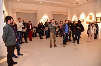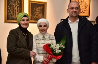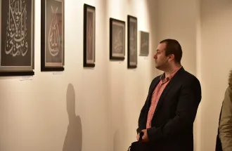 The exhibition was opened by Kenan Šurković, who was born in Sarajevo, and studied Political Sciences on the University of Sarajevo. He is also the President of Association for promotion of the Islamic arts Monolit. Mr. Šurković introduced the audience about the history of the Islamic arts, mostly based on the Calligraphy.