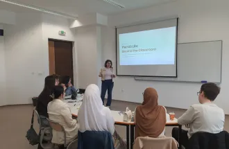 The ELT curriculum was then presented by Asst. Prof. Dr. Emina Jelesković, who highlighted the structure of the program and clarified the key distinctions between the ELIT and ELT study programs. In addition, Instructor Maja Olovčić shared insights into student life at the university and engaged participants through an interactive activity designed to encourage participation and reflection.