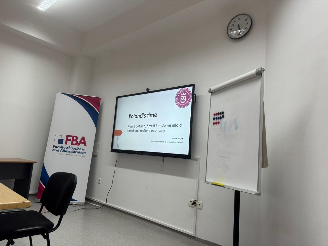 On Tuesday, October 14, 2025, the IUS Faculty of Business and Administration (FBA) welcomed Dr. Marek Dziura, from the Krakow University of Economics, Poland, who delivered an engaging guest lecture to master’s students of the courses IBF503 International Business Environment and IR571 International Organizations.