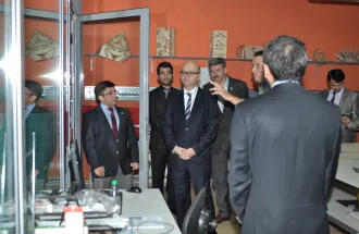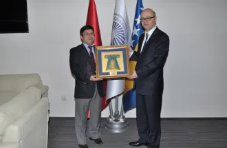 During the meeting respected guest and his hosts have discussed the future cooperation and potential projects and HE Ambassador Erginay expressed his willingness to provide adequate support to the university and its students. After the meeting, Rector Oğurlu gave a campus tour, and showed to the Ambassador Erginay Research and Development Center with its Bioengineering, Genetics, Chemistry, Physics, Mechatronics and Electronics, and computer science laboratories, as well as a large Sports Hall, Art Gallery, highly equipped classrooms, amphitheaters, and many other facilities fully accessible for IUS students and staff.