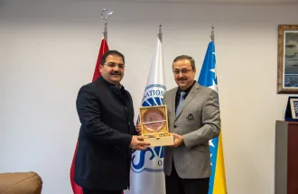 Within the scope of their visit to the City of Sarajevo administration, Şanlıurfa Metropolitan Municipality Mayor, Mr. Zeynel Abidin Beyazgül and the Mayor of Haliliye Municipality, Mr. Mehmet Canpolat accompanied by the Secretary of the City of Sarajevo administration, Mrs. Amina Deljković, paid a visit to the International University of Sarajevo (IUS) on Monday, November 14, 2022. The delegation was welcomed by the IUS Rector, Prof. Dr. Ahmet Yıldırım, Secretary General, Mr. Ibrahim Inal and Rector's Adviser for Administrative Duties, Assistant Professor Muhammed Yasir Göz.