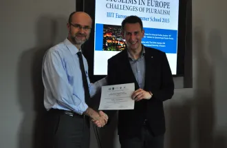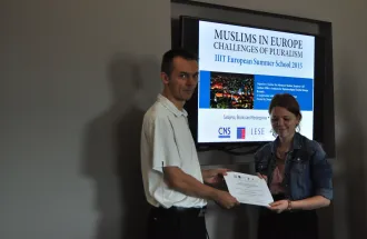 European Summer School of International Institute of Islamic Thought (IIIT) ended on Wednesday August 19, 2015. The Summer School titled Muslims in Europe: Challenges of Pluralism was held at the premises of the International University of Sarajevo (IUS) and certificates of attendance were given to all participants of the school. CNS Director Ahmet Alibašić and Vice Rector of the IUS Assist. Prof. Dr. Mirsad Karić addressed the students and handed them certificates of participation. The official part of the summer school ended with talks and impressions of participants during a cocktail.
