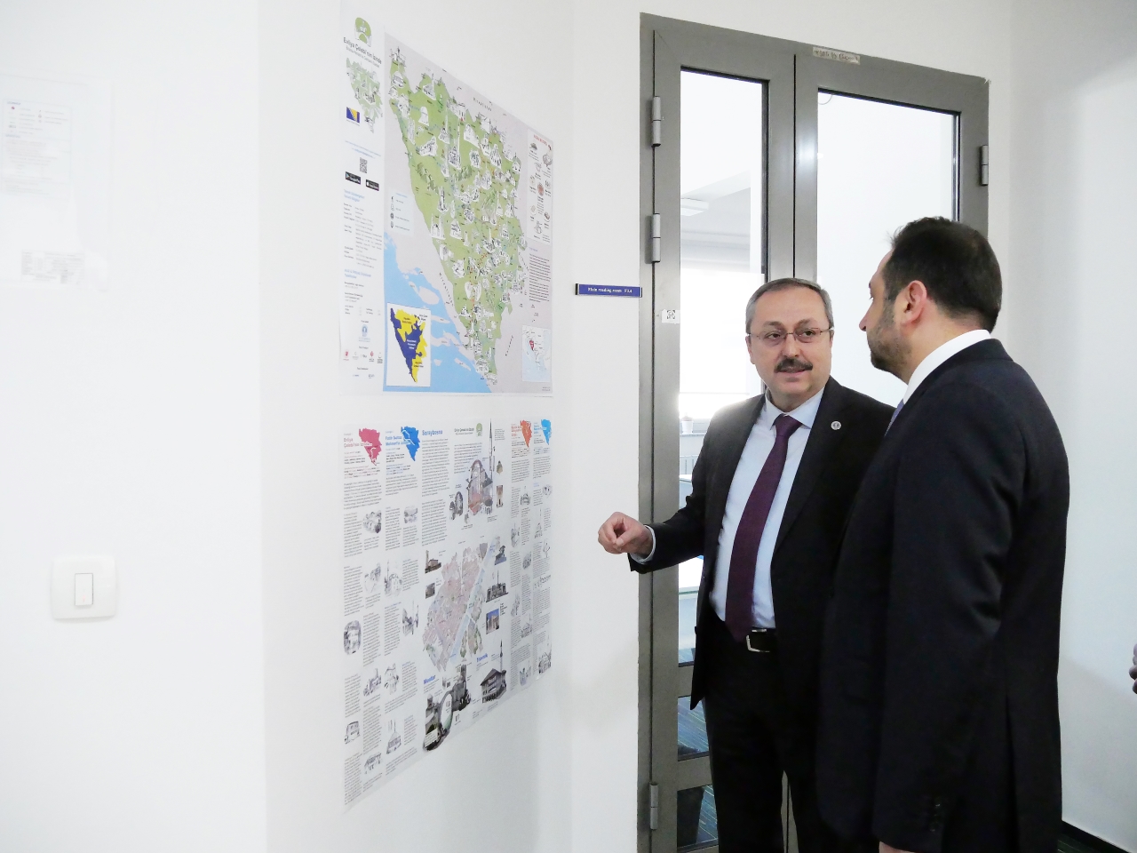 As part of his visit, the Ambassador was also introduced to the ongoing activities of the cultural heritage project titled “In the Footsteps of Evliya Çelebi: Ottoman Heritage in Bosnia and Herzegovina,” implemented in cooperation between the IUS Balkan Research Centre and the Department of Hospitality and Tourism management of the Embassy of the Republic of Turkiye to Bosnia and Herzegovina. Project memorabilia and key highlights were presented, demonstrating the University's commitment to preserving and promoting shared cultural values through research, education, and cross-border cooperation.