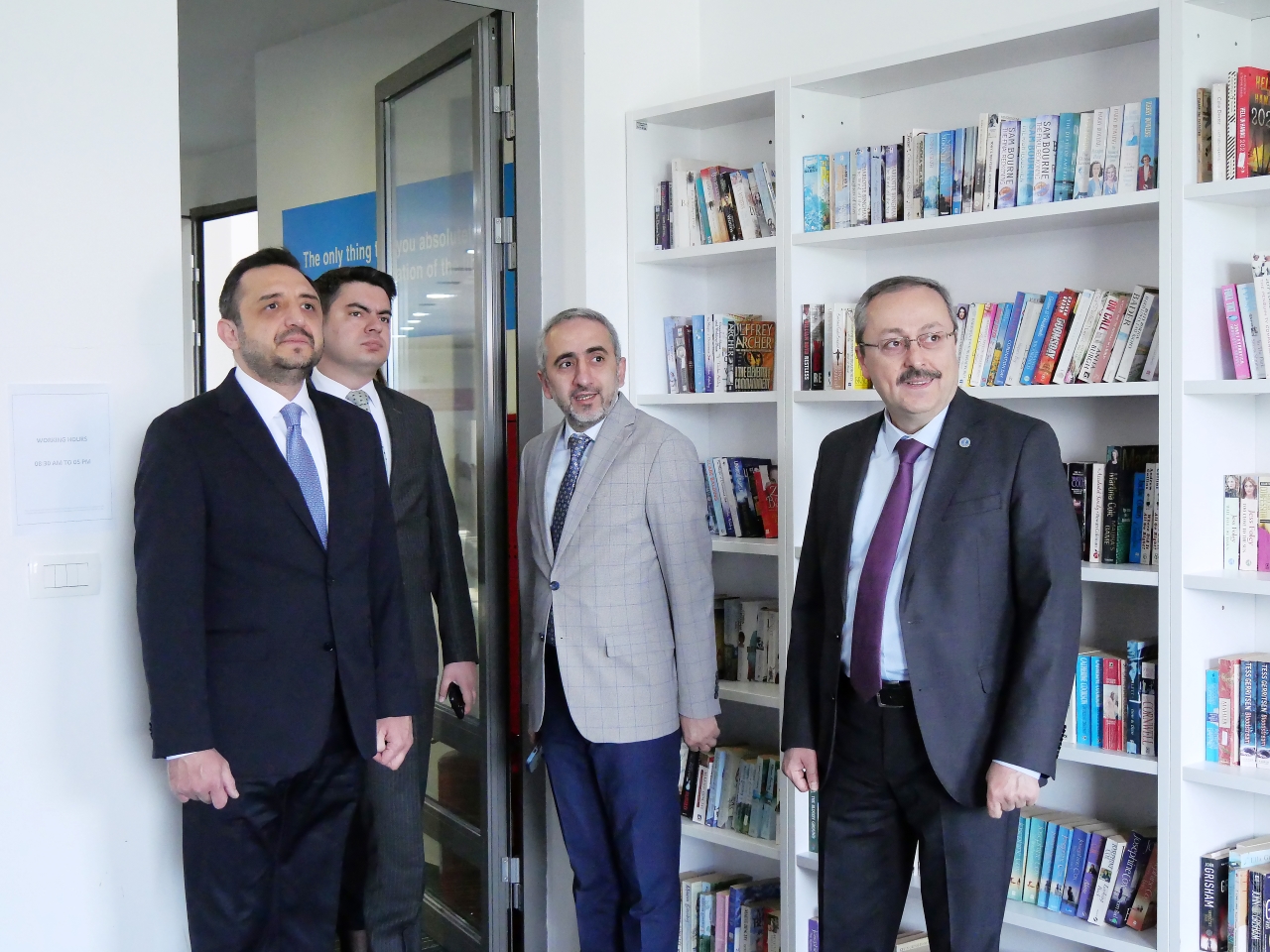 Ambassador Akseki was cordially greeted by the IUS Rector, Prof. Dr. Ahmet Yıldırım, Vice-Rector for General Affairs, Mr. Muhammed Yasir Göz, MA, and IUS Secretary General, Mr. İbrahim İnal. The visit began with a guided tour of the University’s main campus facilities, including state-of-the-art laboratories, modern classrooms, and the university library. The Ambassador was impressed by the academic infrastructure and the dynamic learning environment IUS offers to both local and international students.