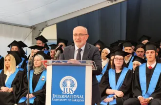 Mr. Kemal Ademović, Speaker of the BiH House of Peoples, also spoke at the ceremony. He remarked that the graduates have achieved their academic goals and are now prepared to contribute to Bosnia and Herzegovina and their respective countries. He acknowledged the challenges ahead but assured them that they are now equipped to face them. He urged the graduates to uphold their reputation and the reputation of their profession, with their homelands being of utmost importance. He extended special congratulations to the MA and PhD graduates for their advanced education and wished them successful careers in prestigious institutions. He also expressed gratitude to IUS and the SEDEF Foundation for their ongoing efforts to improve education, thereby fostering quality professionals who will make significant contributions to their countries and the world.