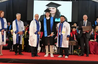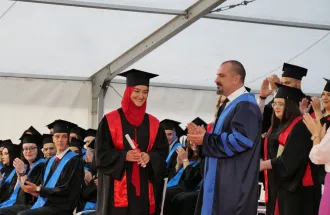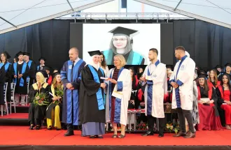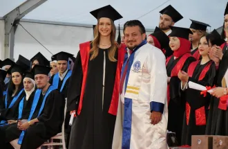 The Ambassador of the Republic of Turkey to Bosnia and Herzegovina, His Excellency Mr. Sadık Babür Girgin, addressed the graduates, their families, and distinguished guests. He praised the University for providing quality education and producing highly competitive professionals. He congratulated the graduates on their hard work and dedication, reminding them that as they step into the professional world, they bear responsibility not only for themselves but also for society and humanity. He highlighted the suffering in Gaza and expressed his hope for more leaders in various fields who are committed to making the world a better place.