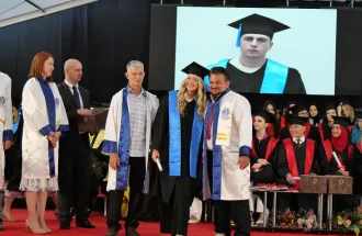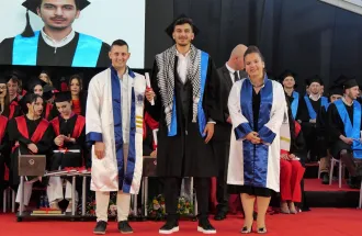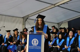 The welcoming speech was held by the IUS Vice-Rector for General Affairs, Associate Professor Muhammed Yasir Göz, who addressed the attendees and said that the graduates represent the IUS vision of “a learning community that transcends borders, cultures, and religions.” He also added that in celebrating the achievements of the Class of 2024, the community must not forget the humanitarian crisis in Gaza. He urged the graduates to work towards justice, peace, and humanitarian aid and to use their education to advocate for peace initiatives.