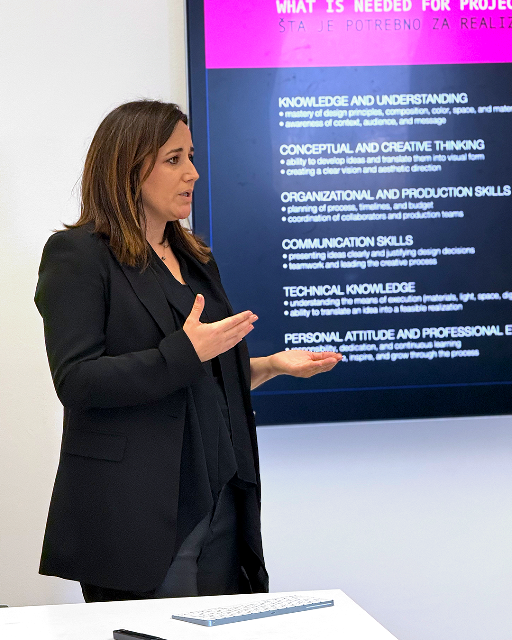 In her lecture, “Beyond the Frame: Spatial Narratives in Contemporary Design”, Ms. Tanović offered valuable insight into the world of scenography and contemporary design. She reflected on her extensive work across national and international design projects, theatre and museum exhibitions, and contributions to television, including her work at Hayat Television. Students of IUS programs were inspired by her vision of spatial storytelling and her creative impact on cultural production in Bosnia and Herzegovina and beyond.