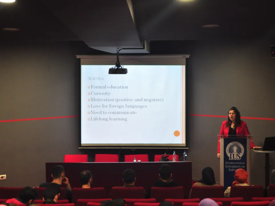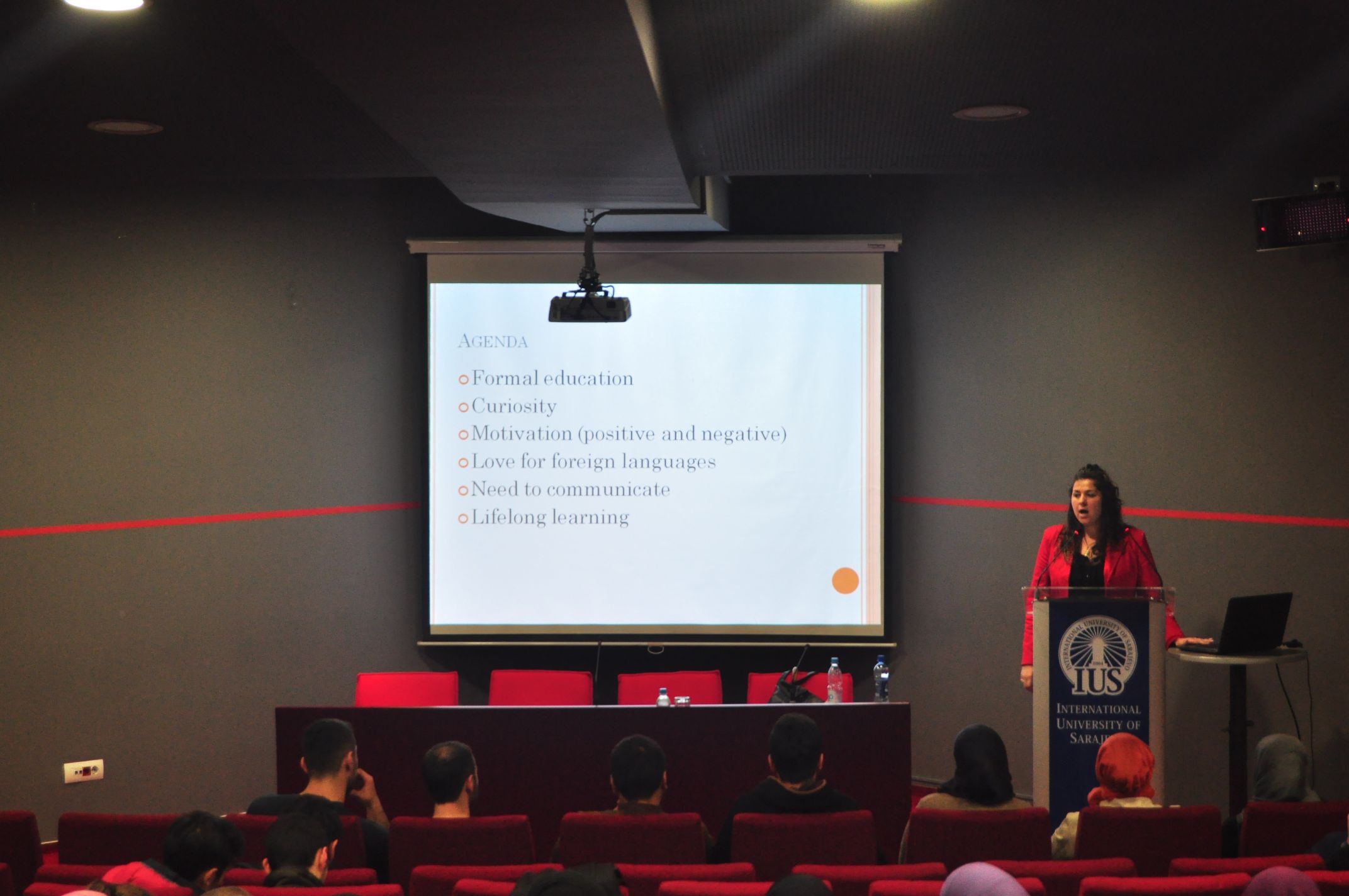 During the lecture, Alma Pirić talked about formal education, curiosity, motivation (positive and negative), love for foreign languages, need to communicate as important triggering factors for learning a second language and its acquisition in general. It is the fact that a world is becoming a ‘global village’ where people are forced to learn some new languages for the sake of communication and interaction with people from other communities. Learning a ‘second’ language implies not only learning one particular language but learning a third or fourth language subsequently to a native language. Professor Pirić stated that learning a second language does not imply only learning it in a designed instructional environment and within a formal process.