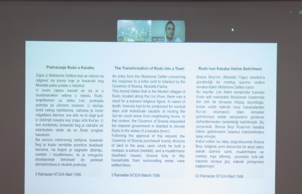 In addition to Dr. Husić, speakers included Prof. Dr. Sedad Bešlija, Director of the Institute of History, University of Sarajevo; Dr. Uğur Koca from the General Directorate of State Archives of the Republic of Türkiye; Dr. Ramazan Pantik from the General Directorate of Foundations of the Republic of Türkiye; and Dr. Fatih Çalışır.