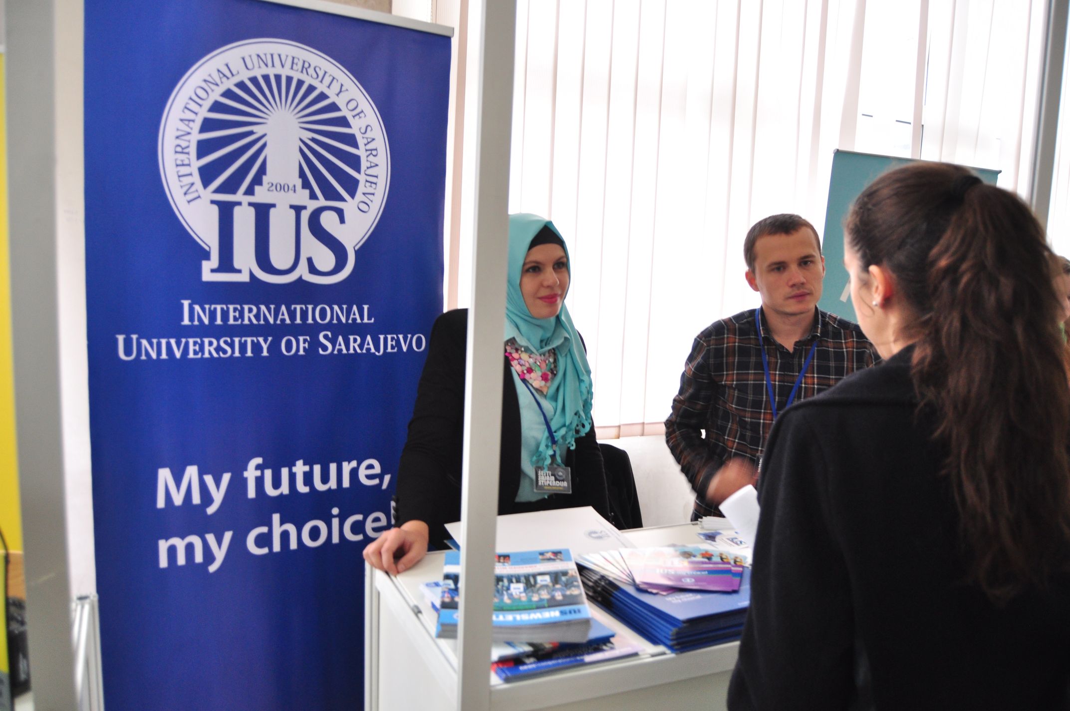 International University of Sarajevo (IUS) participated at the 6th Scholarship Fair today at the Mechanical Engineering Faculty of the University of Sarajevo. IUS presented new faculties and programs and work of the Leadership and Entrepreneurship Center (LEC) as well as IUS Lifelong Learning Center (IUS Life) and English Language School (ELS). Scholarship Fair is a unique event in Bosnia and Herzegovina whose goal is to bring together all the institutions that award scholarships to students for studying in BiH and abroad. This Scholarship Fair is already recognized as an event that promotes and encourages the mobility of students, teachers and associates in Bosnia and Herzegovina and beyond. The entrance fee to the fair was free of charge and couple of thousands young people, current students and prospective future students had the opportunity to visit this event and get information about various possibilities of studying and obtaining scholarships at IUS and other educational institutions.