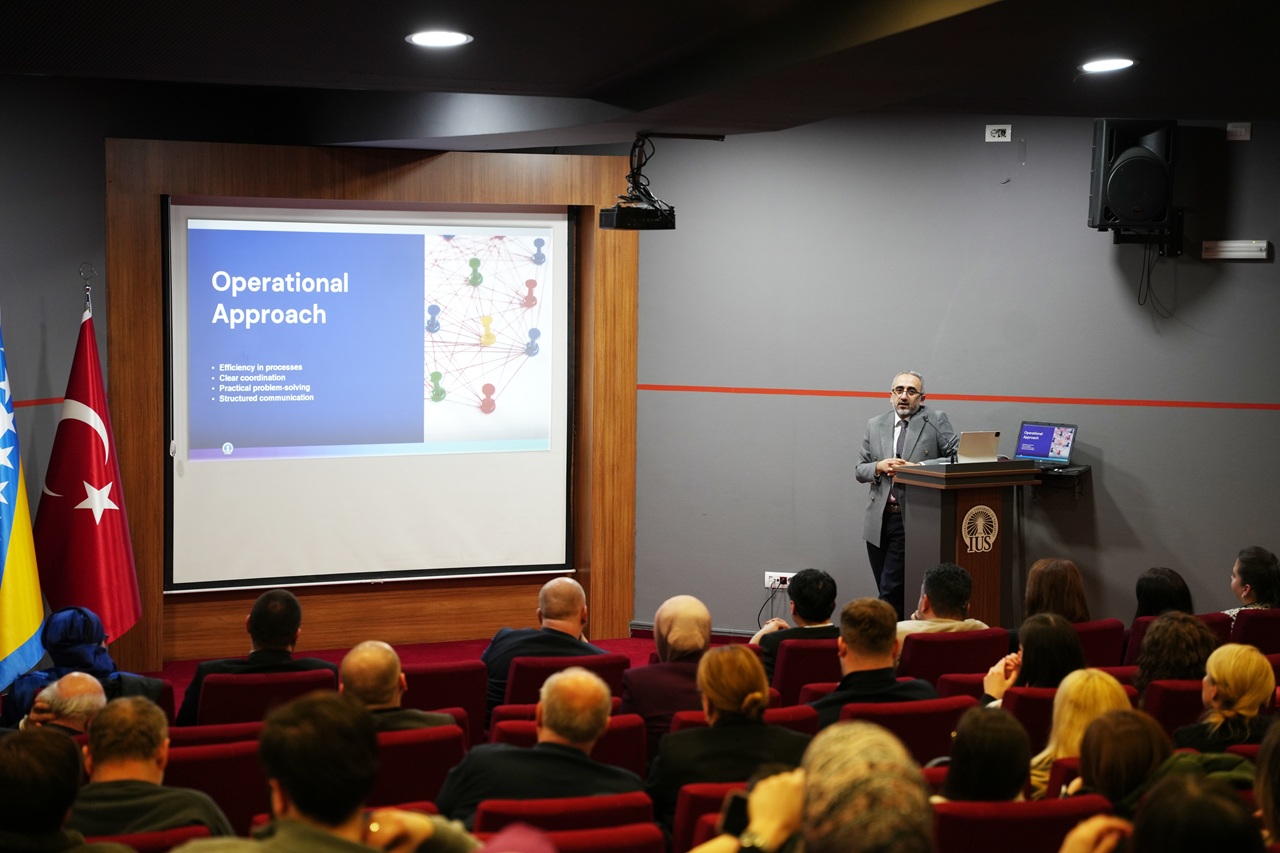The event opened with remarks by the IUS Rector, Prof. Dr. Ali Osman Kuşakcı, who addressed key contemporary challenges affecting higher education, including artificial intelligence and demographic changes. He also spoke about the University’s response to these developments through training, the improvement of teaching methods, the updating of study programs and curricula, digitalization, interdisciplinary approaches, and a stronger contribution to society.