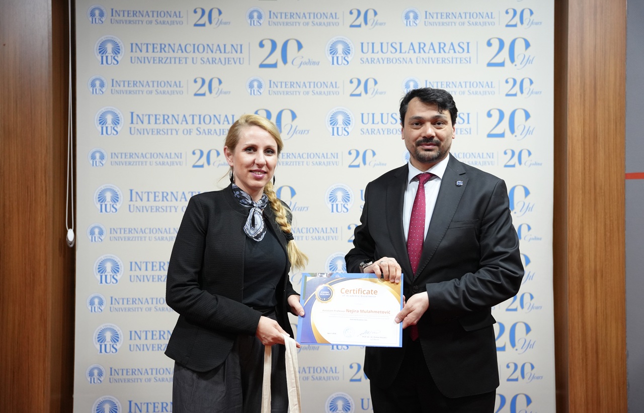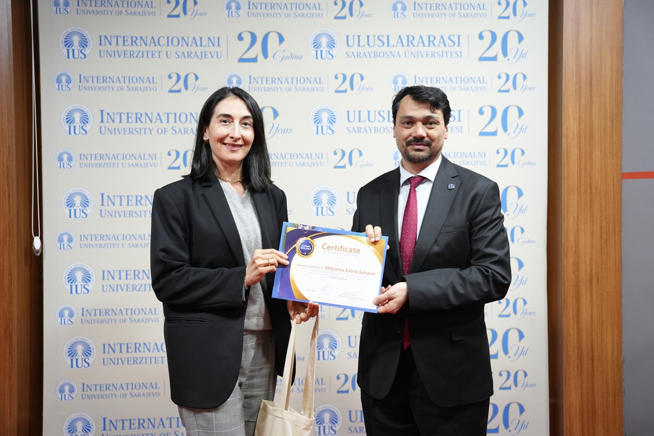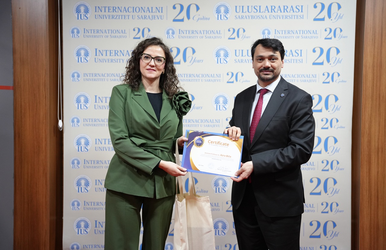 The program also included a special posthumous recognition dedicated to the memory of Emina Lagumdžija. Through the Certificate of Posthumous Recognition and Academic Excellence, IUS honored her lasting contribution as an educator and the meaningful impact she left on her students and colleagues. Her kindness, professionalism, and devotion to teaching remain an important part of the University’s legacy.