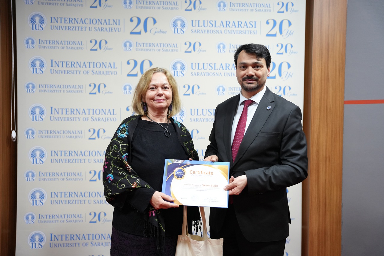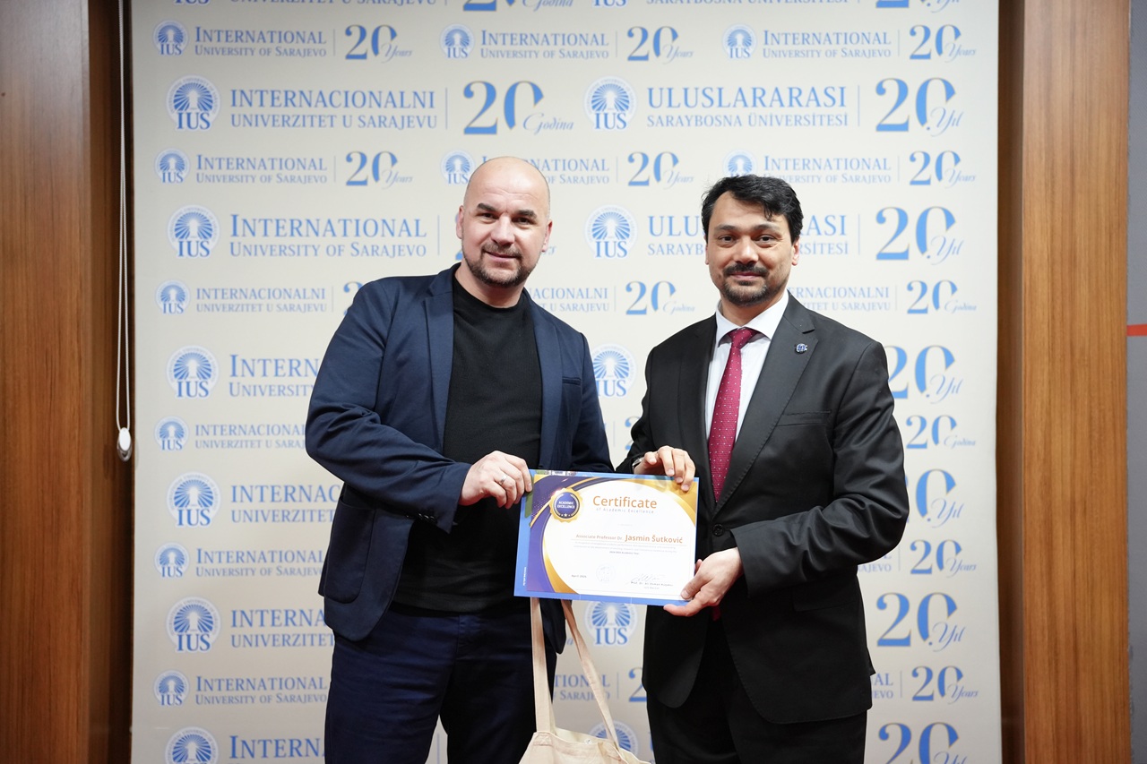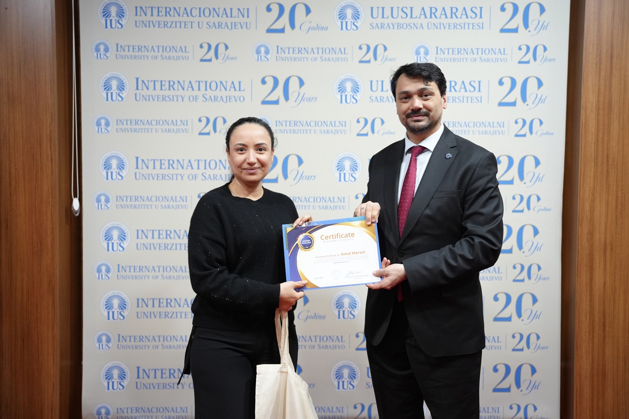 The program also included a special posthumous recognition dedicated to the memory of Emina Lagumdžija. Through the Certificate of Posthumous Recognition and Academic Excellence, IUS honored her lasting contribution as an educator and the meaningful impact she left on her students and colleagues. Her kindness, professionalism, and devotion to teaching remain an important part of the University’s legacy.