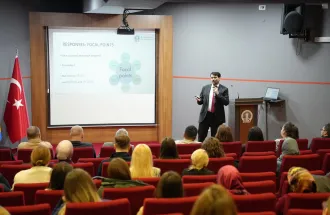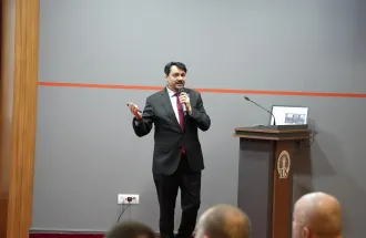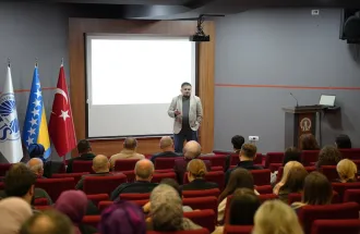 The program continued with presentations by the Vice-Rectors, each offering an overview of important priorities within their respective areas of responsibility. Associate Prof. Dr. Tarik Namas, Vice-Rector for Academic Activities and Students’ Affairs, spoke about the broad scope of academic coordination and student-related processes, while also pointing to several areas identified for further improvement in the period ahead. Associate Prof. Dr. Kanita Karađuzović-Hadžiabdić, Vice-Rector for International Cooperation and Research, presented a review of key developments and priorities over the past five years, with a focus on research, internationalization, accreditation, digitalization, and future planning. Associate Prof. Muhammed Yasir Göz, MA, Vice-Rector for General Affairs, emphasized the importance of efficiency, clear coordination, practical problem-solving, and continued development in areas related to partnerships, infrastructure, student experience, and community building.