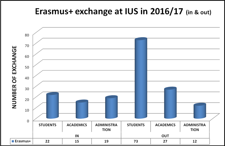In the period from July 2014 to May 2017, the IUS International Relations Office (IRO) successfully organized the exchange of 208 students and employees, which were realized through 23 projects of International Credit Mobility, approved and financed by the EU. IUS management can rightly be proud of this remarkable success, especially considering the fact that the IUS is a relatively young university, and that the number of its students and staff is significantly lower compared to other B&H Universities.