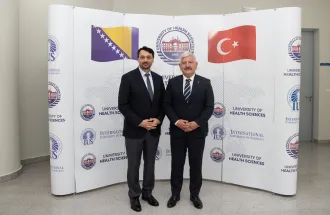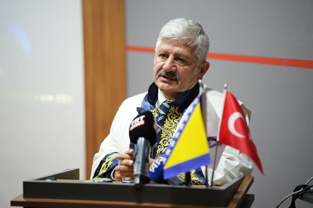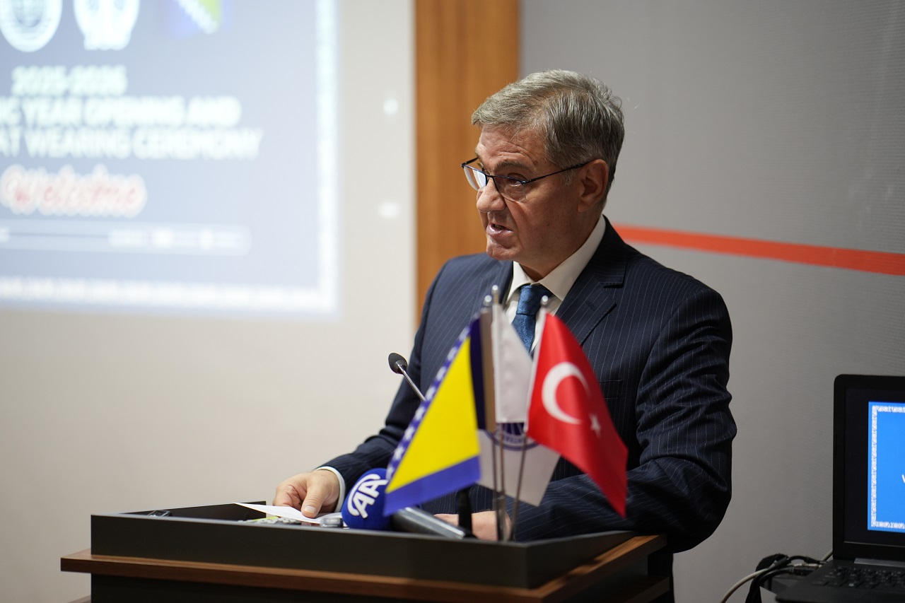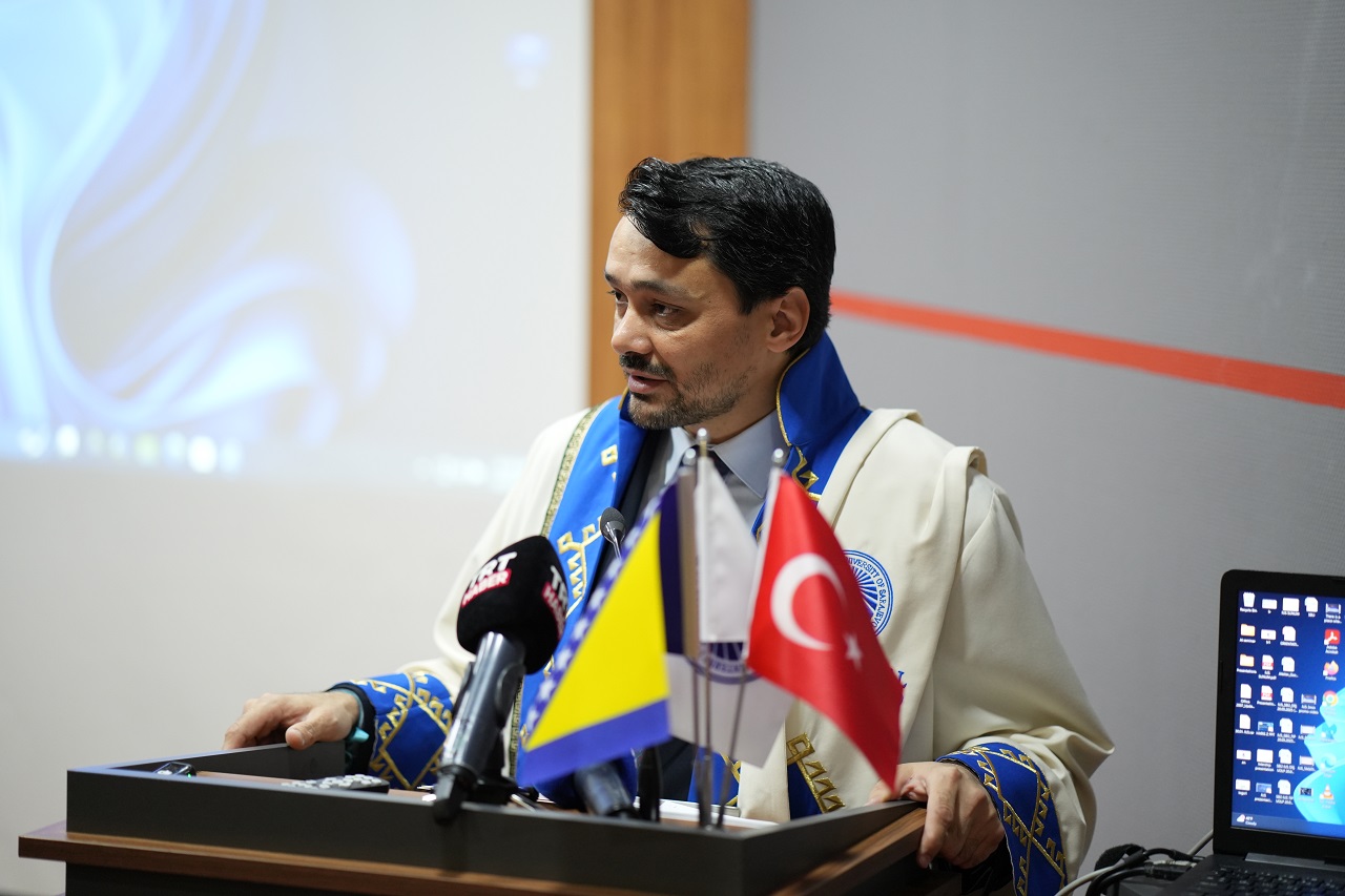 In his opening address, Prof. Dr. Ali Osman Kuşakcı, Rector of IUS, extended a warm welcome to all guests, faculty, and students - especially the first generation of students in the joint double-diploma programs in Medicine and Dental Medicine, developed in partnership with SBÜ. He emphasized that this marks a historic achievement for IUS and a new era in medical education in Bosnia and Herzegovina.
