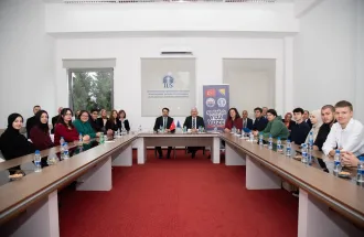 The highlight of the ceremony was the keynote lecture by Prof. Dr. Enes Eryarsoy from Sabancı University, Türkiye. In his lecture, “Disorder of Discourse: AI in the Kaleidoscope,” Prof. Eryarsoy examined the complex relationship between artificial intelligence and human communication, tracing the historical evolution of human thought toward AI. He discussed both the benefits and ethical challenges of emerging technologies, emphasizing the need for responsible and conscious use of AI.