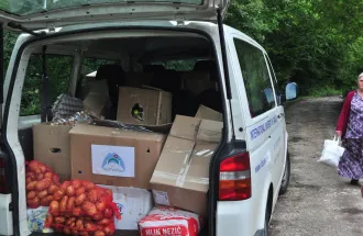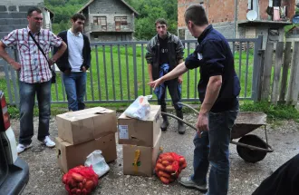 IUS students and Assist. Prof. Dr. Mirsad Karic organized the event to distribute the packages to people in need in Foča. Each package included food and hygiene products for a family of three for about a month.