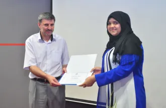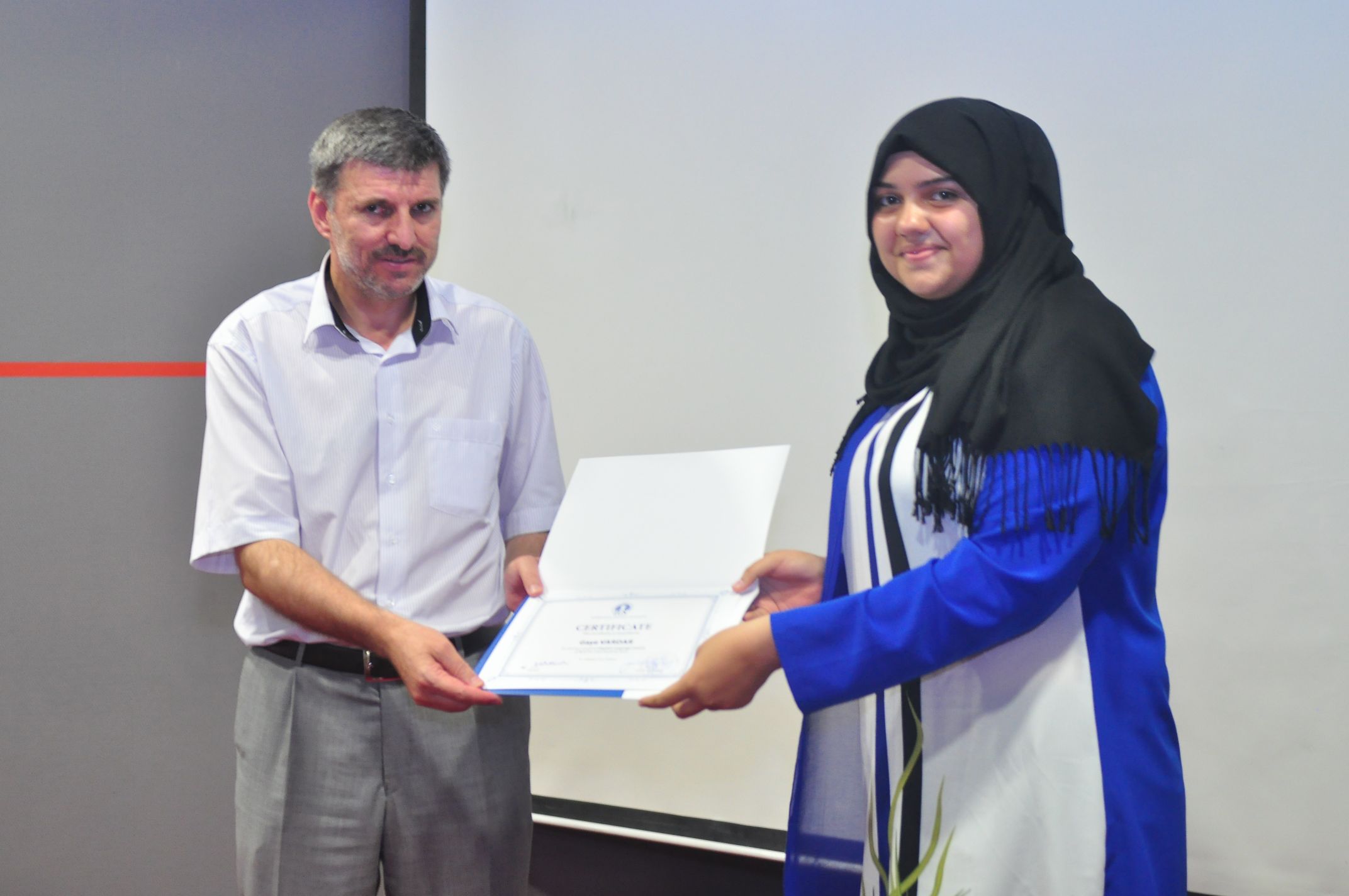 After a full week of learning both inside and outside class, the visiting students were given their certificates by Prof. Dr. Fuat Gürcan, the Dean of FENS, in his role as Acting Rector, in a ceremony attended by the participants, their ELS teachers, IUS staff members and Vice Rector Assist. Prof. Dr. Muhamed Ali.
