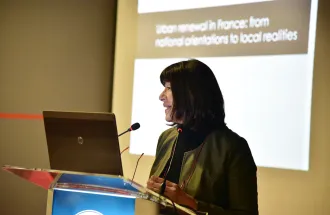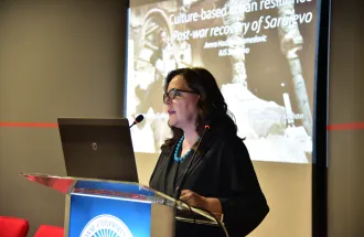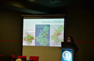 The event continued with a brief introduction of IUS in French by Dr. Gorcin Dizdar from Social and Political Sciences Program and a short video about life at IUS and in Sarajevo in English. The welcome program involved two lectures presented by the Professors from the host and guest institutions: Assist. Prof. Dr. Amra Hadžimuhamedović from Architecture Program in FENS at IUS shared her research titled “Culture-based Urban Resilience: Post-war Recovery of Sarajevo” and Dr. Hélène Garnier, Head of Department of Urban Management and Social Policies at the University of Aix-Marseille, and Dr. Rémi Habouzit presented their research titled "Urban Renewal in France: from National Orientations to Local Realities".