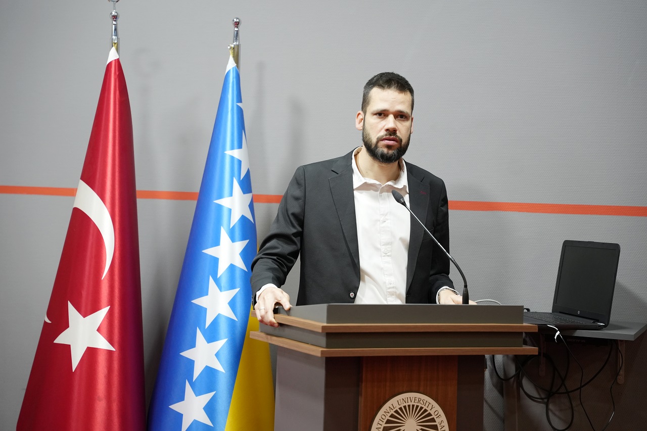 Dr. Muhasilović analyzed Dayton within the broader context of international relations, focusing on the geopolitical dynamics that produced the agreement and the roles played by key global and regional actors. He also addressed the continuing involvement of the international community and its impact on Bosnia and Herzegovina’s political trajectory and Euro-Atlantic aspirations.