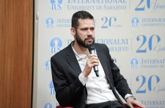 The IUS Balkan Studies Center (BSC) and the Department of Political Science and International Relations (PSIR) at the International University of Sarajevo (IUS) successfully held the panel discussion “Where Bosnia and Herzegovina Stands 30 Years After the Dayton Peace Agreement.” The event brought together three distinguished speakers: Mr. Haris Zahiragić, Assistant Prof. Dr. Jahja Muhasilović, and Assistant Prof. Dr. Mustafa Krupalija, who offered rich, multidimensional analyses of Bosnia and Herzegovina three decades after the signing of the Dayton Peace Agreement. The panel provided a comprehensive and nuanced examination of Dayton, with each speaker approaching the topic from a specific disciplinary perspective.