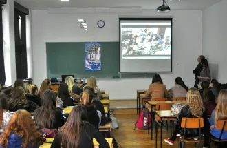 As working part of the program, Hadžikadunić conducted 5 presentations for groups of parents and five graduate classes and he talked about all benefits of studying at IUS. As a result of the last year visit, three first students from Varaždin enrolled at IUS in the academic year 2014/15, two of which also attended presentations in the school and gave their personal accounts on studying at IUS. It is hoped that the second visit will increase this number in the next academic year.