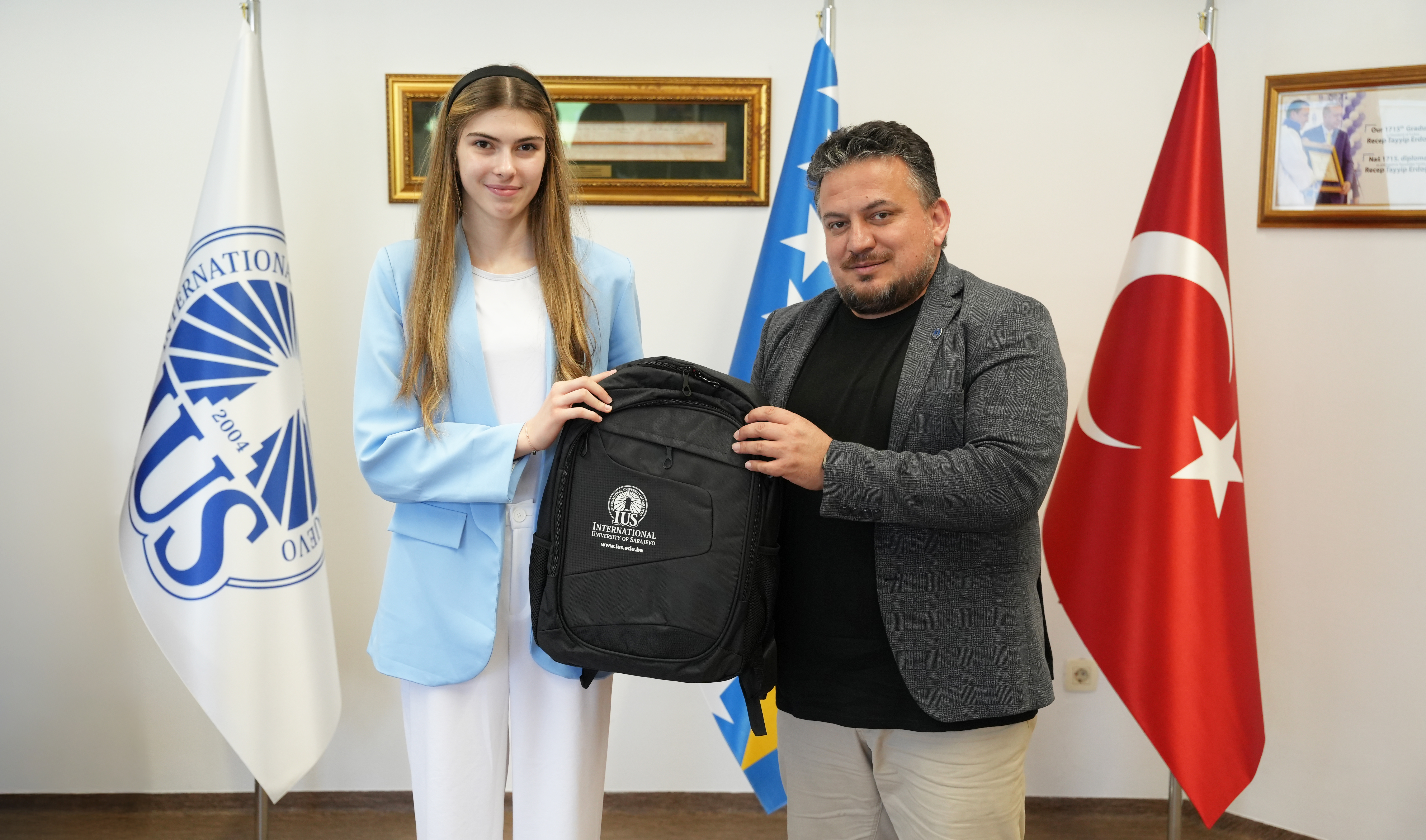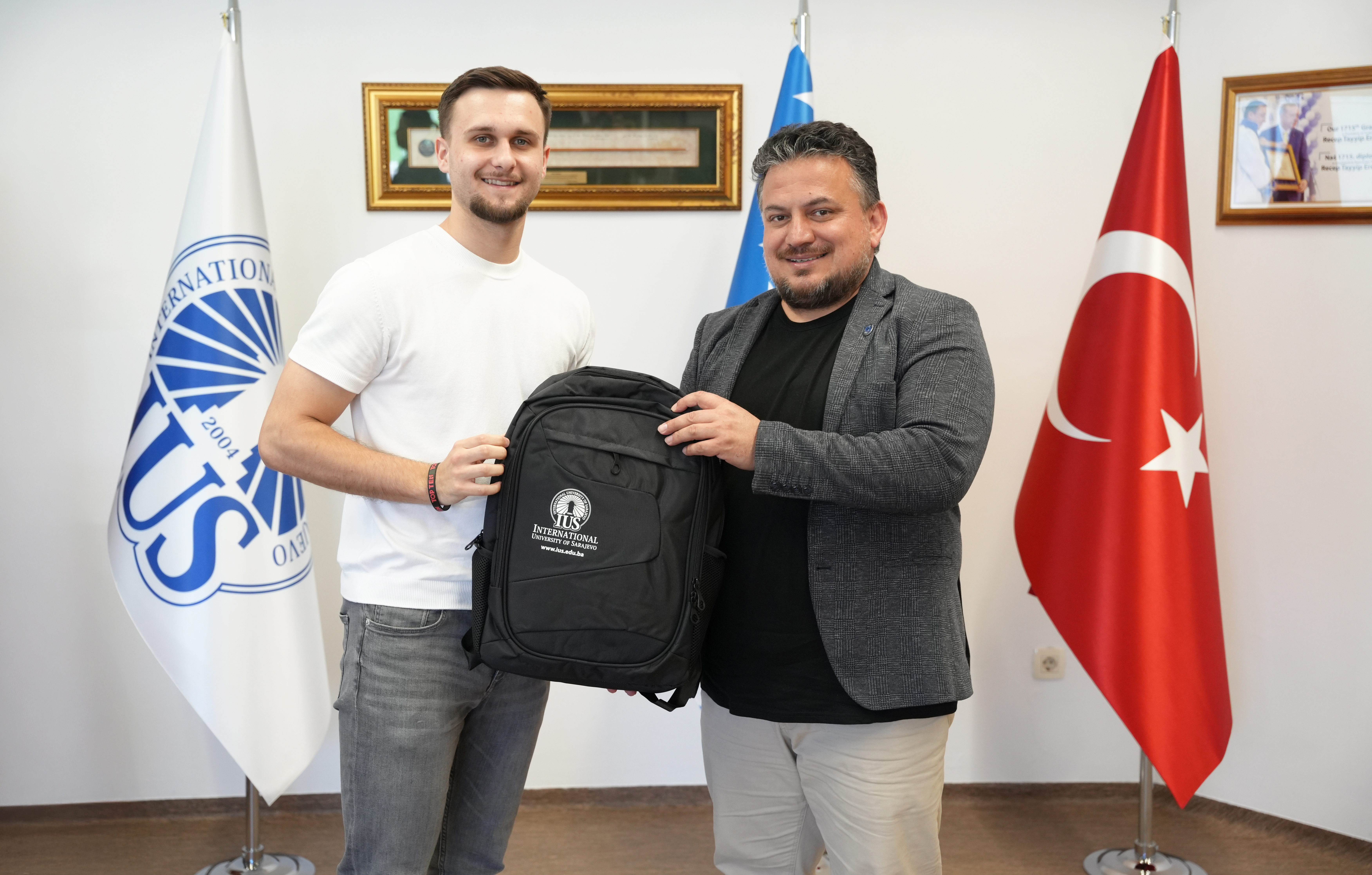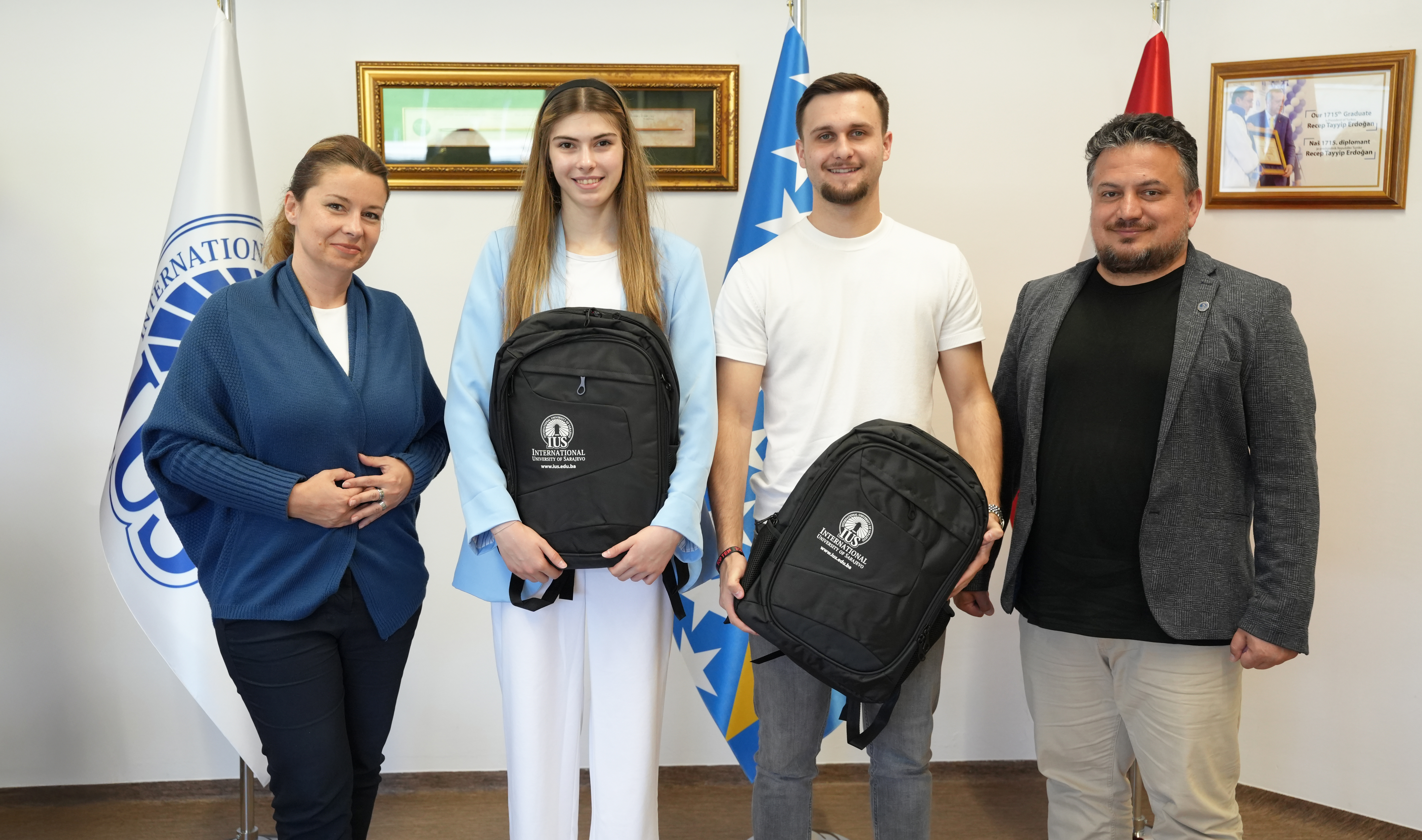 The International University of Sarajevo (IUS) proudly continues to support and celebrate the achievements of its students, both in academic and extracurricular fields. In recognition of their remarkable success in international taekwondo competitions, IUS students Ada Avdagić and Tarik Okerić were invited to a meeting at the Rectorate on Friday.