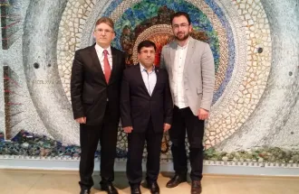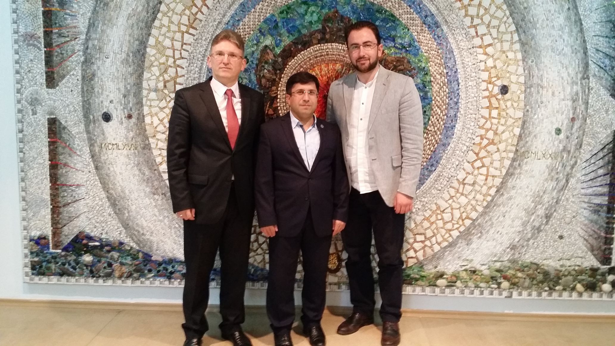 The official meeting with the member of the Macedonian Academy of Science and Arts (MANU), Prof. Dr. Numan Aruç was held in his office. Distinguished Professor Aruca exchanged experiences with Rector Oğurlu, and discussed the educational process of the students from the Republic of Macedonia, Bosnia and Herzegovina and the IUS. Dr. Adnan Ismail, Executive of the Different civil society organizations in Skopje hosted a delegation of IUS, and exchanged their work experience as well. He presented the possibilities for new projects of cooperation with the IUS. During their stay in Macedonia, Rector Oğurlu and Vice Rector Ali met with also with the President of the 'Köprü' association Hüsrev Emin.