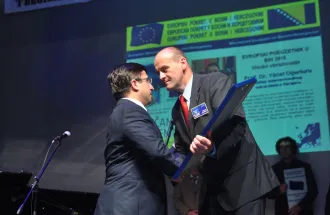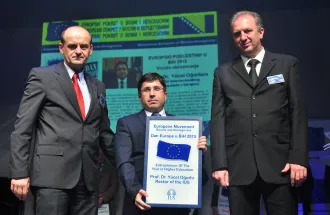 The event was attended by many political representatives of Bosnia and Herzegovina, the region and the countries of Europe, successful businessmen and entrepreneurs. The President of the European Movement in Bosnia and Herzegovina, Predrag Praštalo, presented the award ''Entrepreneur of the Year in the field of higher education for 2014/2015'' to IUS Rector, Prof. Dr. Yücel Oğurlu and President of the Foundation for Education Development Sarajevo (SEDEF), Hasan Topaloğlu. On this occasion, Rector Oğurlu stressed that this award is recognition of the hard work of this institution that within its campus in Ilidža successfully educates students from 52 countries. On a behalf of the president of the Foundation, the award was given to Deputy Director of the Foundation, Armin Kerić.