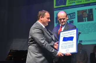 On Monday, June 29, 2015, European Movement in Bosnia and Herzegovina with support of the Brčko Government District organized a "European Day in BiH", in Brčko. During the event, representatives of the International University of Sarajevo (IUS) received a prestigious award in the field of education, for the category - regional recognition of the Western Balkans. Many companies and individuals received awards for their contribution on bringing Bosnia and Herzegovina closer to the European integration path.